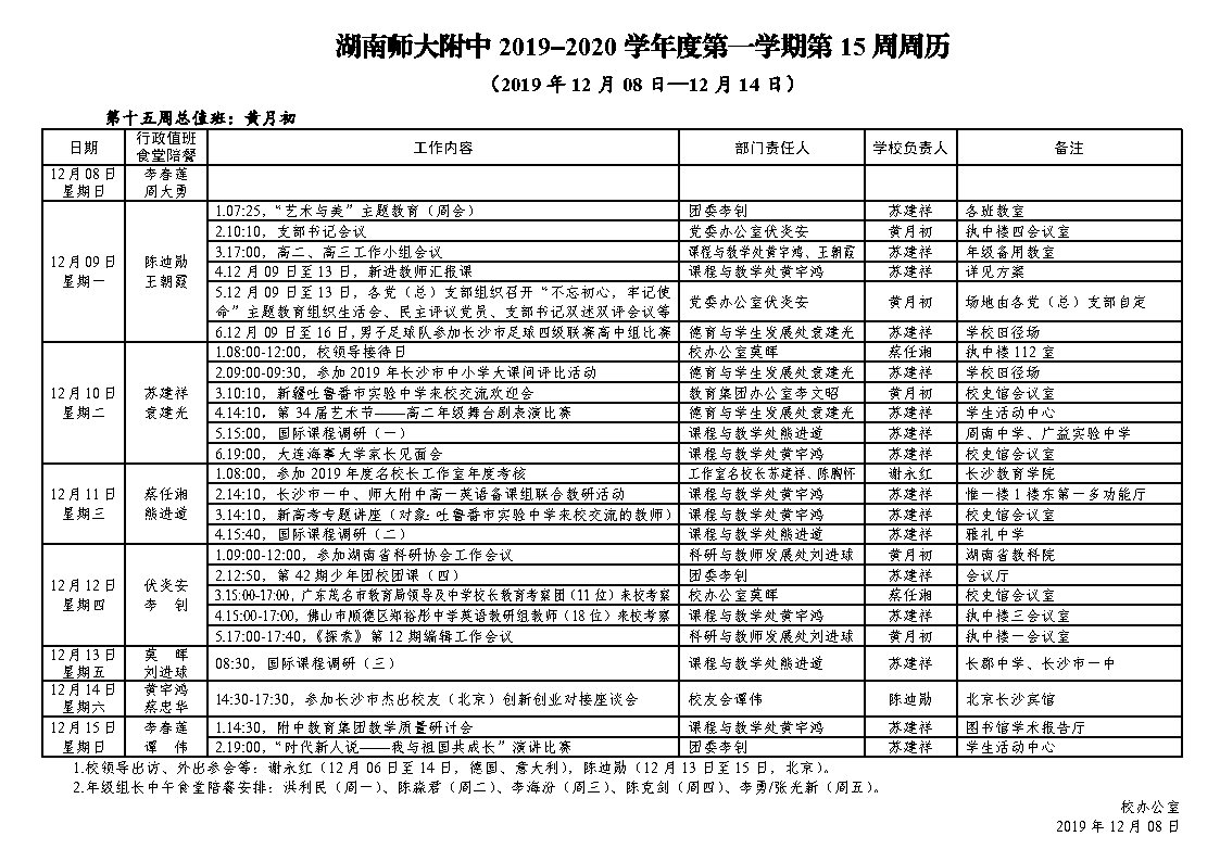 新闻中心 附中新闻 通知公告 最新动态 教育视点 集团学校新闻联播 媒体聚焦 工作安排 微信附中 2019-2020学年度第一学期第15周周历 发布:系统管理员 来源:未知 日期:2019-12-10 人气:分享到: 上一篇:2019-2020学年度第一学期第13周周历 下一篇:2019-2020学年度第一学期第16周周历 通知公告 更多 2024年端午节放假通知 湖南师范大学附属中学2024年寒假 关于湖南师范大学开展“师大好网 湖南师大附中2024年端午节教职工 湖南师大附中2023-2024学年度考核工 湖南师大附中2024年公开招聘专任 最新动态 更多