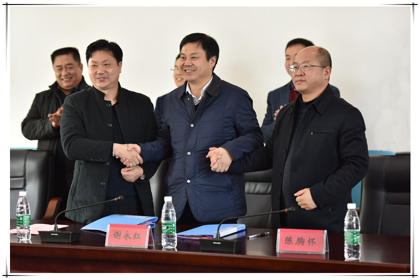 谢永红、陈胸怀与沿溪中学校长彭敦发代表各自学校签约,三校情谊得以延续。