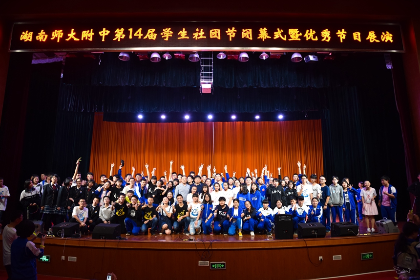 副校长陈迪勋、学生发展处副主任吴卿、团委书记李钊与近千名现场观众一同欣赏了精彩演出。晚会还特别邀请了长郡、雅礼、明德、麓山、麓山滨江、附中梅溪湖等兄弟学校的社团干部到场助兴和交流。