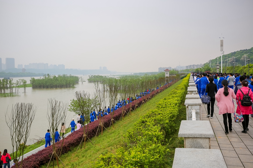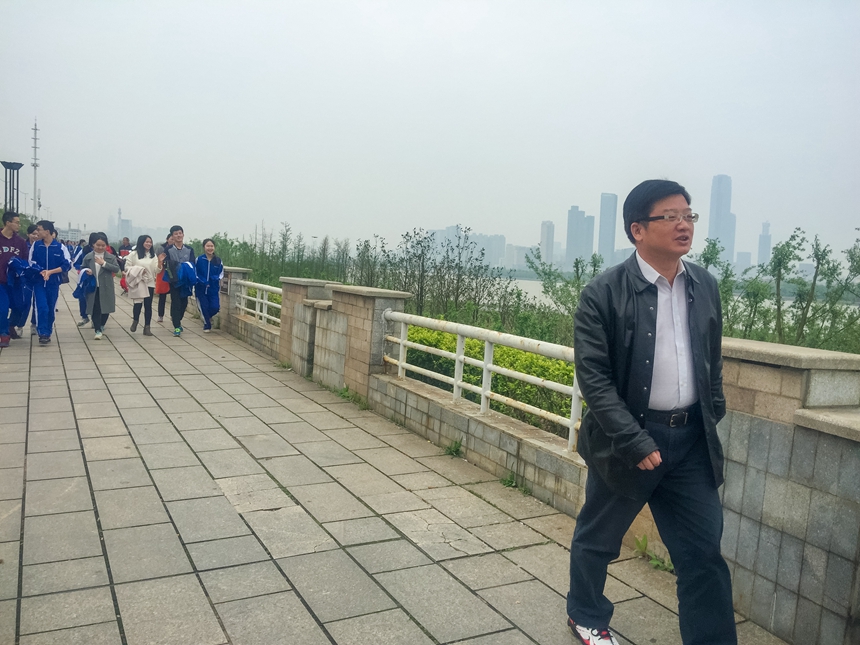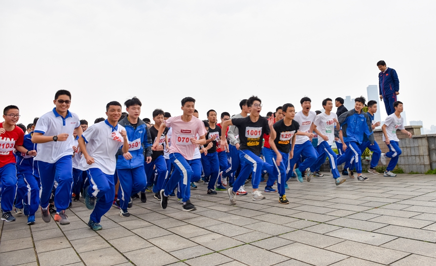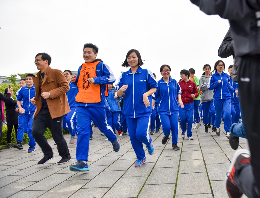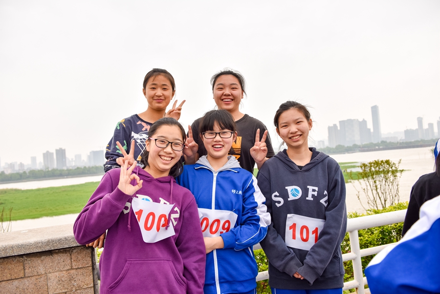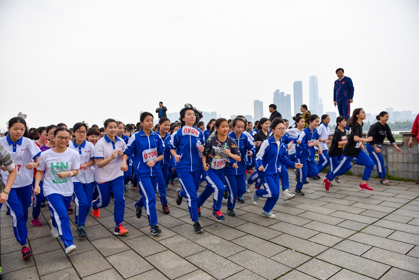 活动分竞赛组、普通组和教职工组三个组别,从桃子湖路口沿江风光带出发,全程4.12公里。随着谢永红校长发令枪声响起,竞赛组的同学们如离弦之箭般冲出起跑线。随后,谢永红带领着普通组和教职工组的一千余名师生激情开跑, 师生们矫健的步伐和永不言弃的拼搏精神形成了一道亮丽的风景线,不少路人驻足观看,为附中师生喝彩。