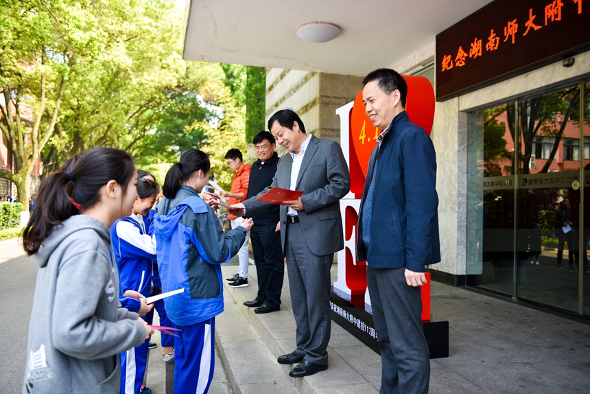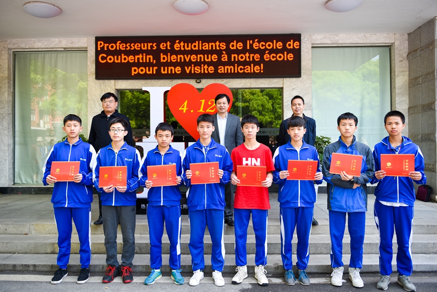 4月13日课间操时间,校长谢永红,副校长樊希国、陈迪勋为获奖班级、获奖个人颁发了奖状和证书。