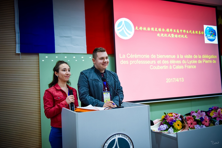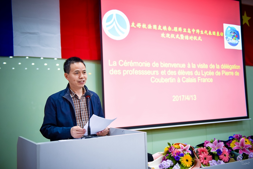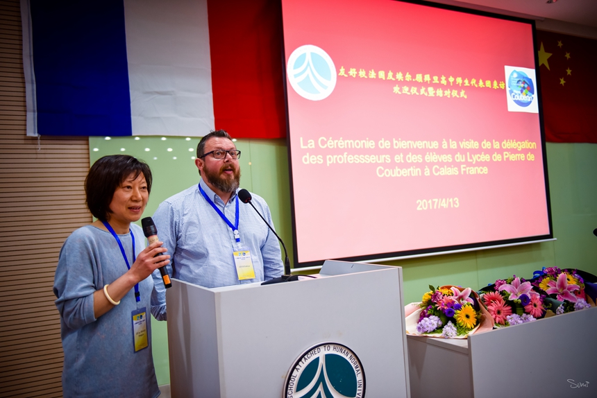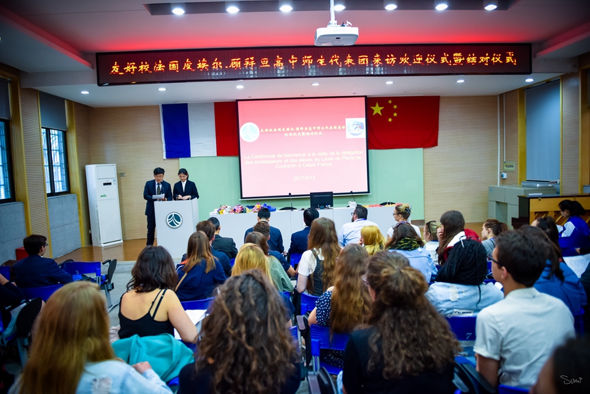 13日下午,校长谢永红、副校长樊希国以及学校部门负责人、教师代表、结对学生与家长等90余人参加了欢迎暨结对仪式。樊希国代表学校致欢迎辞,他表示,自2012年我校和顾拜旦高中缔结友好学校以来,两校师生间的每次互访和交流,都迸发出惊喜的火花,留下美好的记忆。欢迎仪式上,我校合唱团以一曲热情洋溢的《青春舞曲》表达了我校师生对远道而来的法国客人的热烈欢迎与美好祝愿。