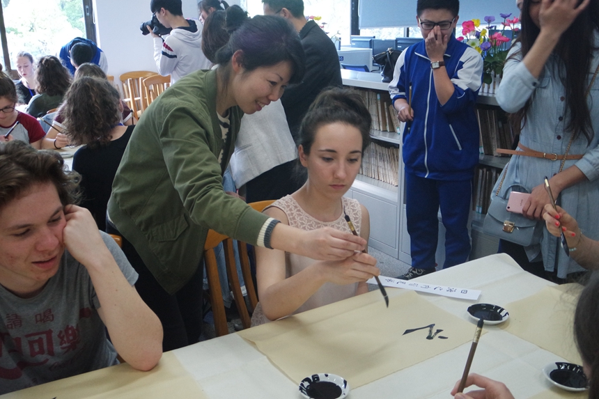 短短三天时间转瞬即逝,分别总是那么不舍。欢送会上,附中同学们大胆运用英语、法语与法国朋友们积极交流、互动,法国全体师生用中文合唱一曲中国歌曲《红》,令我们惊喜而感动。大家共同祝愿,两校师生的友情如同当初共同种植在校园内的友谊之树,枝繁叶茂,充满生机!
