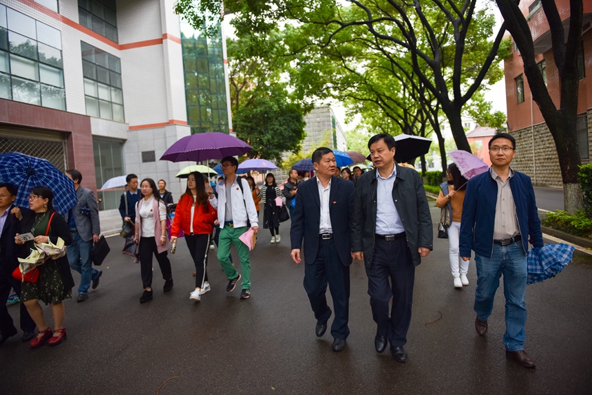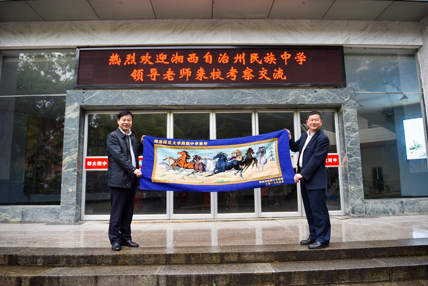 新闻中心 附中新闻 通知公告 最新动态 教育视点 集团学校新闻联播 媒体聚焦 工作安排 微信附中 湘西自治州民族中学高三老师来校交流 发布:校办公室 来源:校办公室 日期:2017-04-24 人气:分享到: 4月21日上午,湘西自治州民族中学高三年级70余位老师在党委书记郑英滨的带领下来我校交流,校长谢永红热情地接待了客人们。 谢永红带领客人们参观了校园,介绍了我校的办学历史和基本情况。在图书馆前,郑英滨代表民族中学对我校的热情接待表达了感谢之情,并赠送了一幅具有湘西民族特色的织锦。 九点半,客人们一行走进我校高三年级的课堂,听课、评课,和上课的老师进行面对面的交流,就高考迎考复习策略等话题相互探讨。 校办公室主任莫晖、课程与教学处主任姜小明参与了接待工作。 上一篇:学校学术委员会教师赴东北师大附中考察交流 下一篇:福建省厦门第一中学德育专干培训班学员来校交流 通知公告 更多 湖南师范大学附属中学基建工程专 关于开展2024年事业单位工作人员 关于开展2023-2024学年度科研成果评 湖南师大附中2024年教育教学成果 湖南师范大学附属中学2024年秋季 湖南师范大学附属中学2024年暑假 最新动态 更多