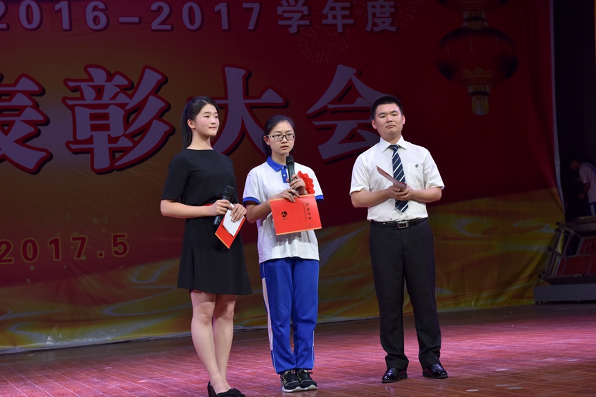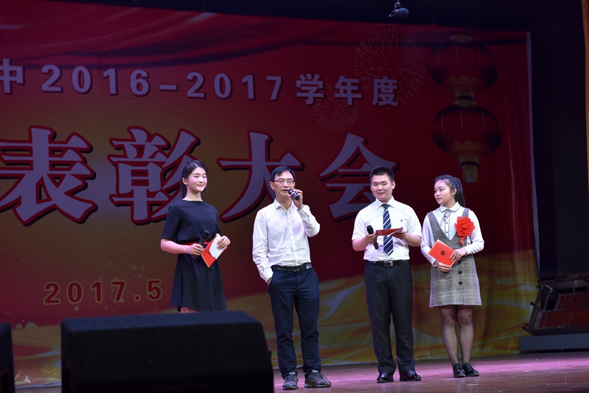 谢永红、罗培基、谢军为省市“三好学生”“优秀学生干部”获奖代表颁奖。李品间代表获奖学生发表感言。她回顾了附中三年的学习生活,分享了担任学生干部所得到的锻炼与经验,表达了对母校的深深的感恩与祝愿。