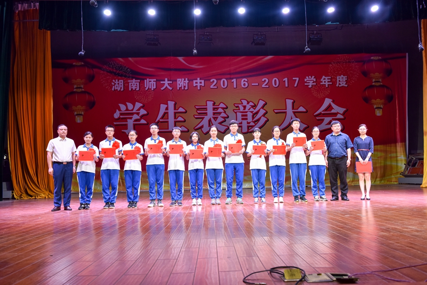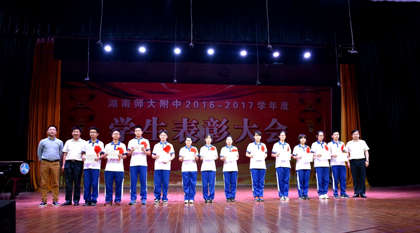 陈迪勋、吴卿、陈金生颁发“文明学生奖”。近年来,我校的办学条件和办学品味不断提高,师生的整体素质和学校的社会美誉度也不断上升,去年,学校荣获湖南省直机关文明标兵单位。学校今年特别设立了文明学生奖学金,奖励品行优良、行为文明、遵纪守法、热心公益、热爱劳动、生活俭朴、尊师爱友、富有爱心和责任心的学生。共有李孜等123人获得此项奖学金。李孜作为代表接受主持人采访,在采访中,李孜同学低调谦虚但不失精彩的回答,生动诠释了附中学生综合素质高,道德品行优的特质。