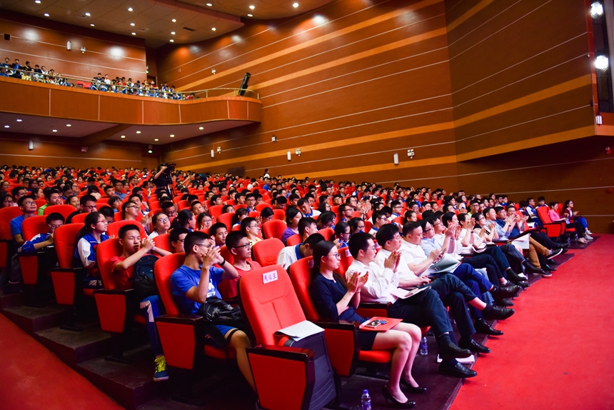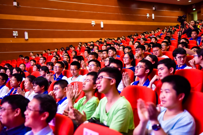 曾少华、蔡任湘、杨芳颁发“学科竞赛奖”。杨芳代表奖学金设立单位步步高集团发表讲话,向同学们致以美好的祝愿。分别入选化学奥林匹克竞赛国家代表队与地球科学奥林匹克竞赛国家代表队的陈一乐同学、冯睿杰同学作为获奖学生代表为同学们分享了学习经验,向母校与恩师表达了诚挚的感 谢。