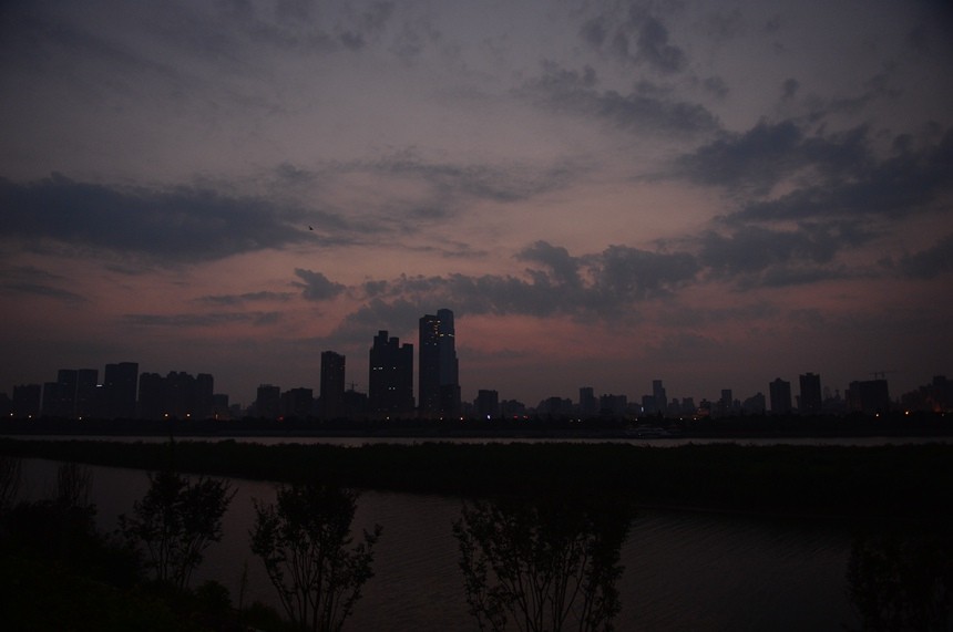 凌晨5:15的潇湘中路,江边的天空已微微亮。桃子湖路口,保卫处的保安们已经早早就位。