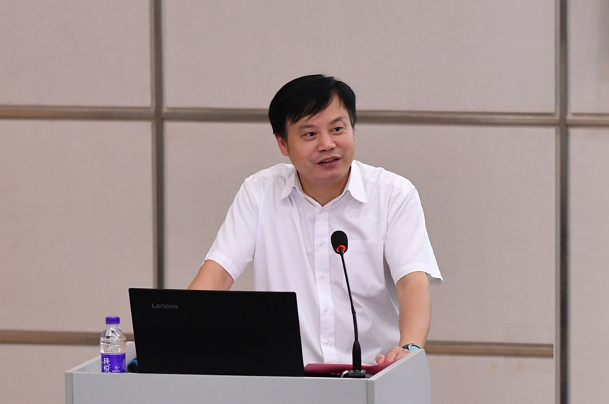 北京大学物理学院党委书记,全国物理竞赛委员会副主任陈晓林教授致辞。他对湖南师大附中承办此次活动表示感谢,对国家物理竞赛委员会及教练团队的辛勤付出表示感谢,他说开展本次物理科学营暨物理培优教学论坛活动,目的就是为了进一步深化中学物理与大学基础物理培优教学的改革,共同探讨拔尖创新型人才的培养模式,共谋新高考改革背景下精英教育的发展道路。他衷心祝愿祝本届科学营暨培优教学培训论坛活动圆满成功!。