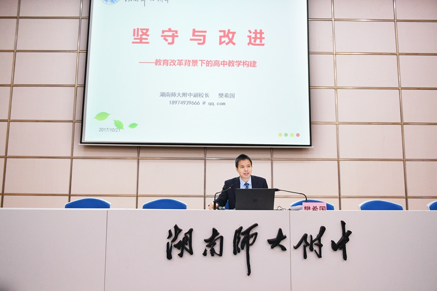开班典礼后,樊希国为培训班作了《坚守与改进——教育改革背景下的高中教学构建》的专题讲座。