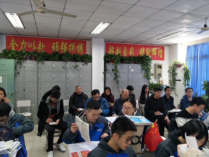李尚斌老师对目前高三复习现状进行分析,强调教学进度需要适当加快,注重加强错题的类题训练,并提出一系列与高三复习相关的具体问题进行共同研讨,老师们群策群力,现场讨论激烈,研讨氛围浓厚。