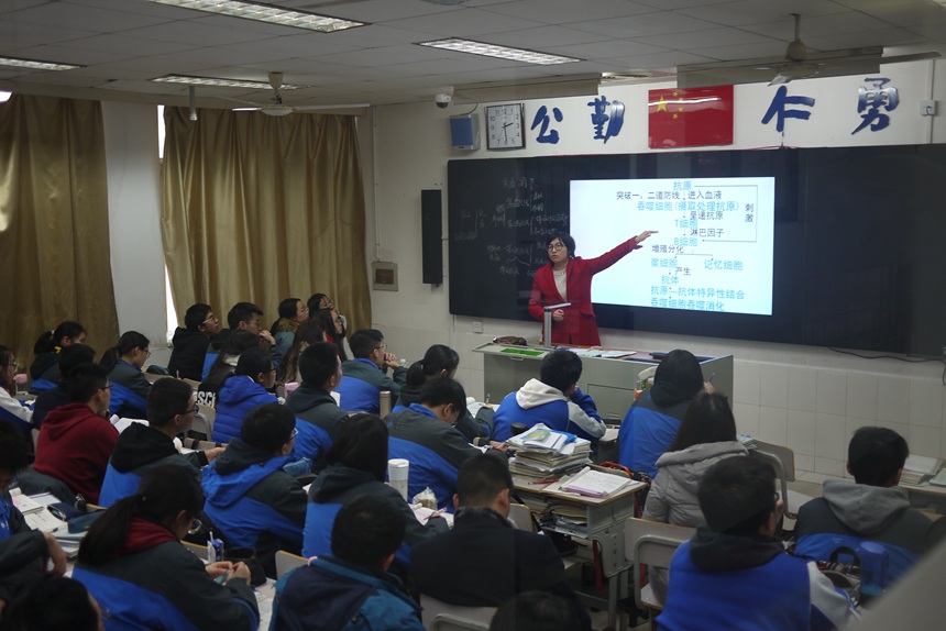 研讨会上,陈佳健老师就免疫调节的内容进行高三一轮复习课例展示。课堂教学三环三扣条理清晰:自主检测夯实基础,合作探究突破难点,优选例题完善框架。主次分明,详略得当,自主合作探究的教学理念贯彻始终。这是继12月11日,彭草老师进行高三第四次月考试卷讲评及试卷质量评析后的又一次集体课例研讨。