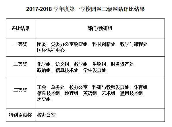 我校2017-2018学年度第一学期校园网二级网站评比结果揭晓