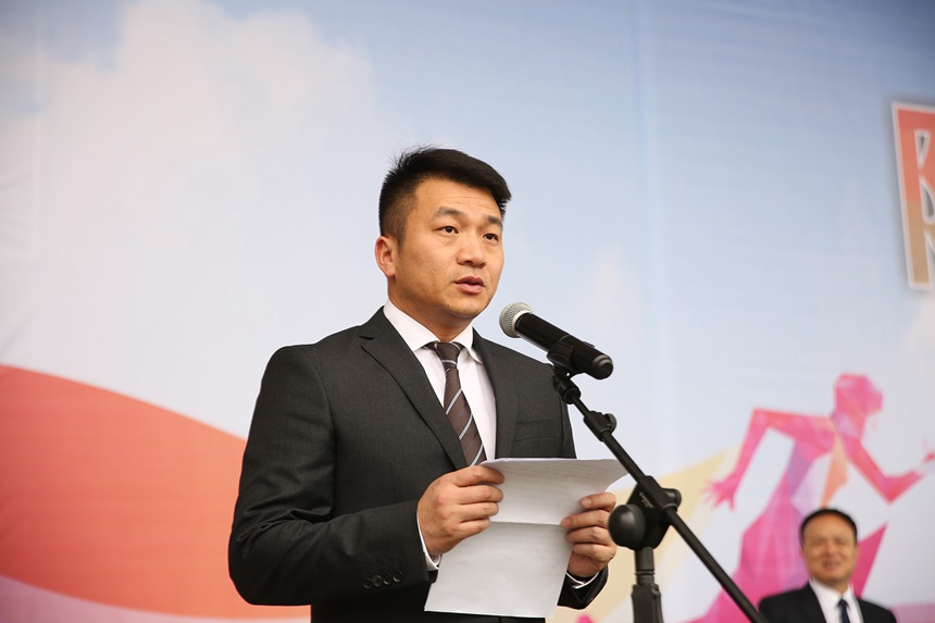 湖南广益实验中学校长廖强致欢迎辞。他对各位领导、老师和运动员的到来表示热烈欢迎,为广益中学能够承办本届赛事感到十分荣幸。他表示,广益中学高度重视竞技体育工作,有信心和能力为附中传统的田径运动会添上浓墨重彩的一笔。他希望运动员们在体育赛场上不仅要充分展示实力,更要重视体育精神;他祝愿全体参赛队员发挥出高水平,展现附中风采。