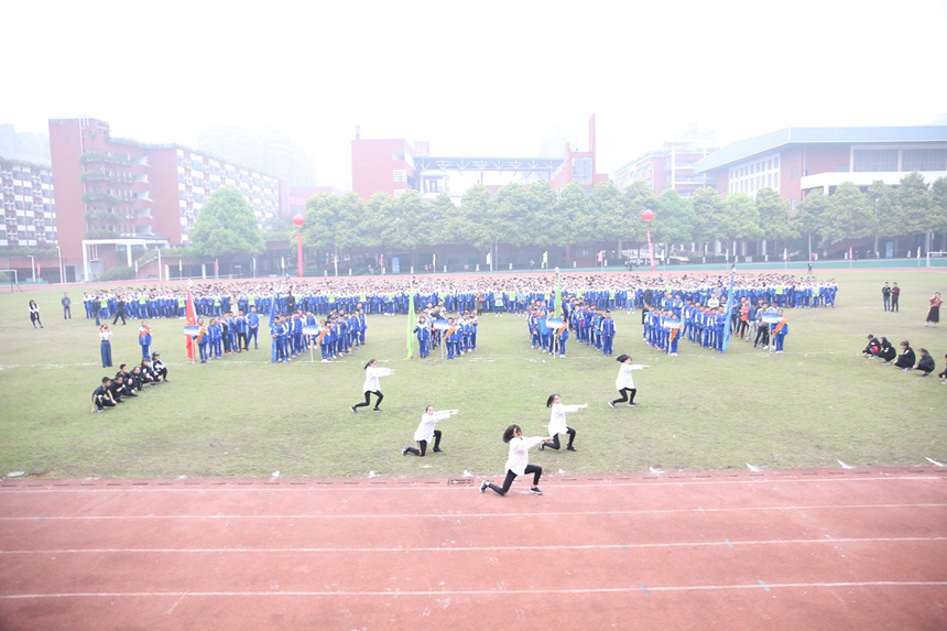 在欢快的校歌声中,陈迪勋宣布本届运动会胜利闭幕。