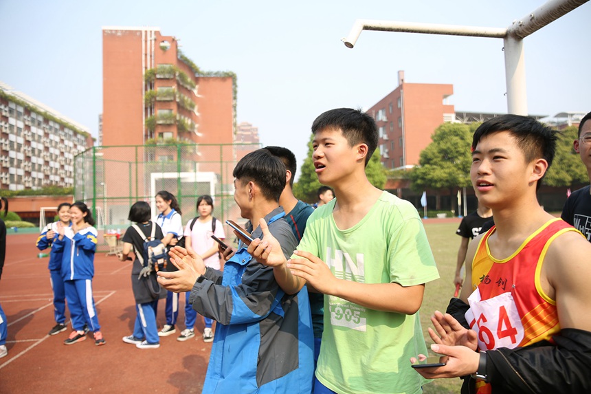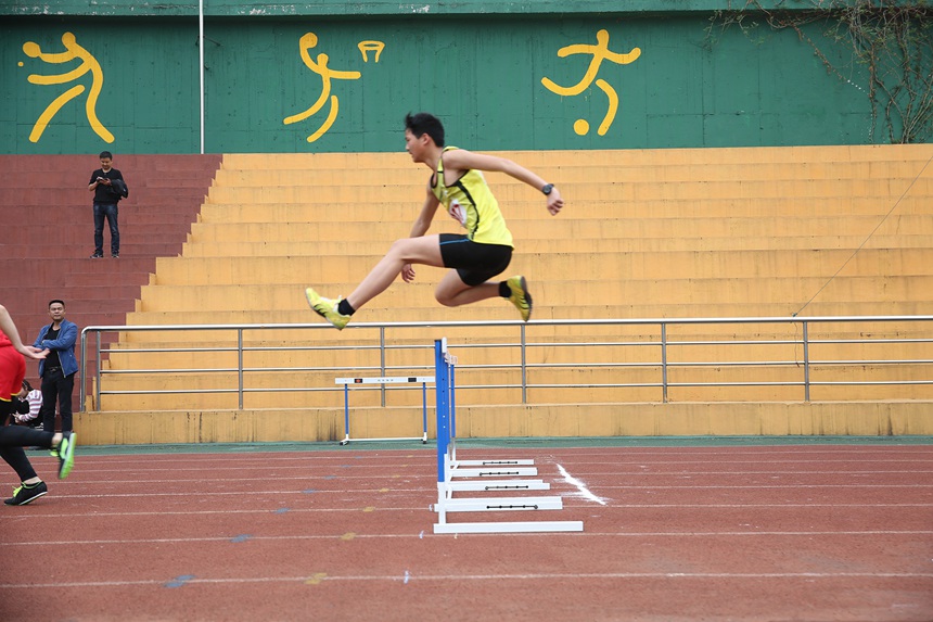 一段精彩的表演后,来自湖南师大附中教育集团各校区的运动员展开激烈角逐。各校区运动健儿在跨栏、跳远、跳高、投铅球、掷铁饼、400米接力赛等运动项目中各展风采。现场老师和同学们的加油声、欢呼声、鼓掌声和欢笑声响彻比赛现场。