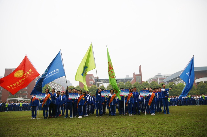 在庄严的国歌和青春洋溢的校歌声中,开幕式拉开帷幕。