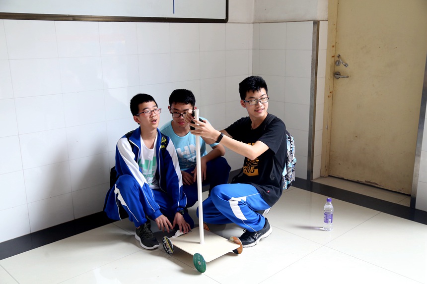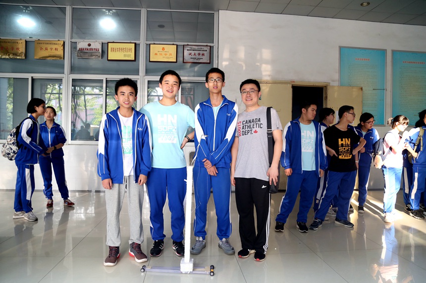 校长助理兼科技创新处主任蔡任湘,学生发展处副主任吴卿出席了活动,此次竞赛活动邀请了物理教研组彭知文、邓放明、马顺存、王超老师担任评委,参赛班级班主任到现场指导,50余名同学到现场观摩。8个班级代表队参加角逐,各代表队共同设计、制作重力车并操作重力车比赛,整个比赛过程精彩纷呈。 最后,根据参赛车辆的高度、砝码重量、设计理念、制作工艺以及车辆移动的距离等评价指标,评委们做出综合评价,评选出一、二、三等奖。1719班、1702班荣获一等奖,1715班、1716班荣获二等奖,1704班、1703班、1708班、1707班荣获三等奖。