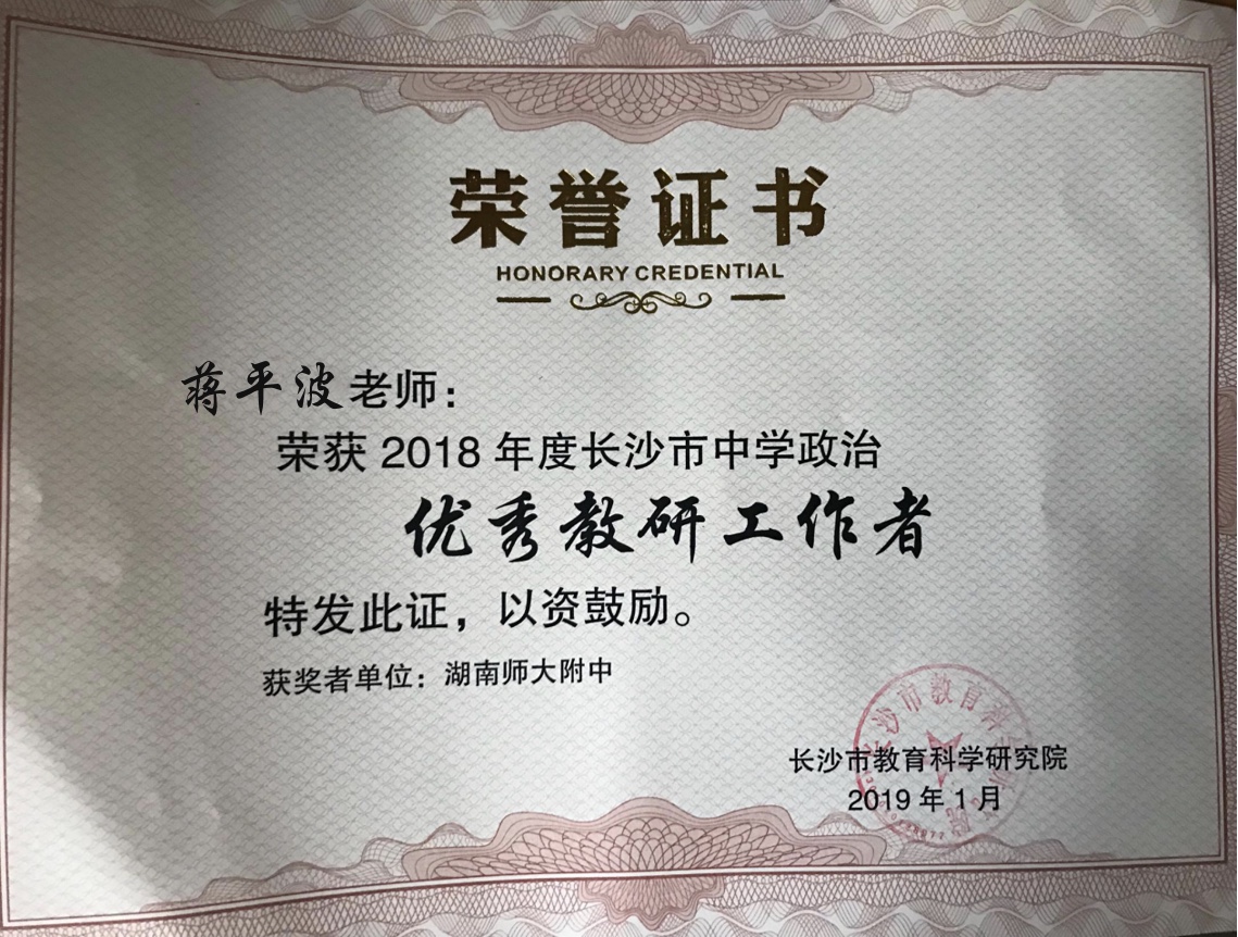 新闻中心 附中新闻 通知公告 最新动态 教育视点 集团学校新闻联播 媒体聚焦 工作安排 微信附中 政治教研组荣获2018年度长沙市“优秀教研组”称号 发布:校办公室 来源:政治教研组 日期:2019-02-20 人气:分享到: 近日,在长沙市教育科学研究院举办的2018年度学科评优活动中,我校政治教研组荣获“优秀教研组”称号,黄治清、蒋平波老师荣获“优秀教研工作者”称号。 (撰稿 游淑雲)(审稿 唐海燕) 上一篇:喜报:彭凌峰同学以总分全国第一名的成绩光荣入选生物奥赛国家代表队 下一篇:我校师生团赴加拿大文思博学校友好交流访问 通知公告 更多 湖南师范大学附属中学基建工程专 关于开展2024年事业单位工作人员 关于开展2023-2024学年度科研成果评 湖南师大附中2024年教育教学成果 湖南师范大学附属中学2024年秋季 湖南师范大学附属中学2024年暑假 最新动态 更多