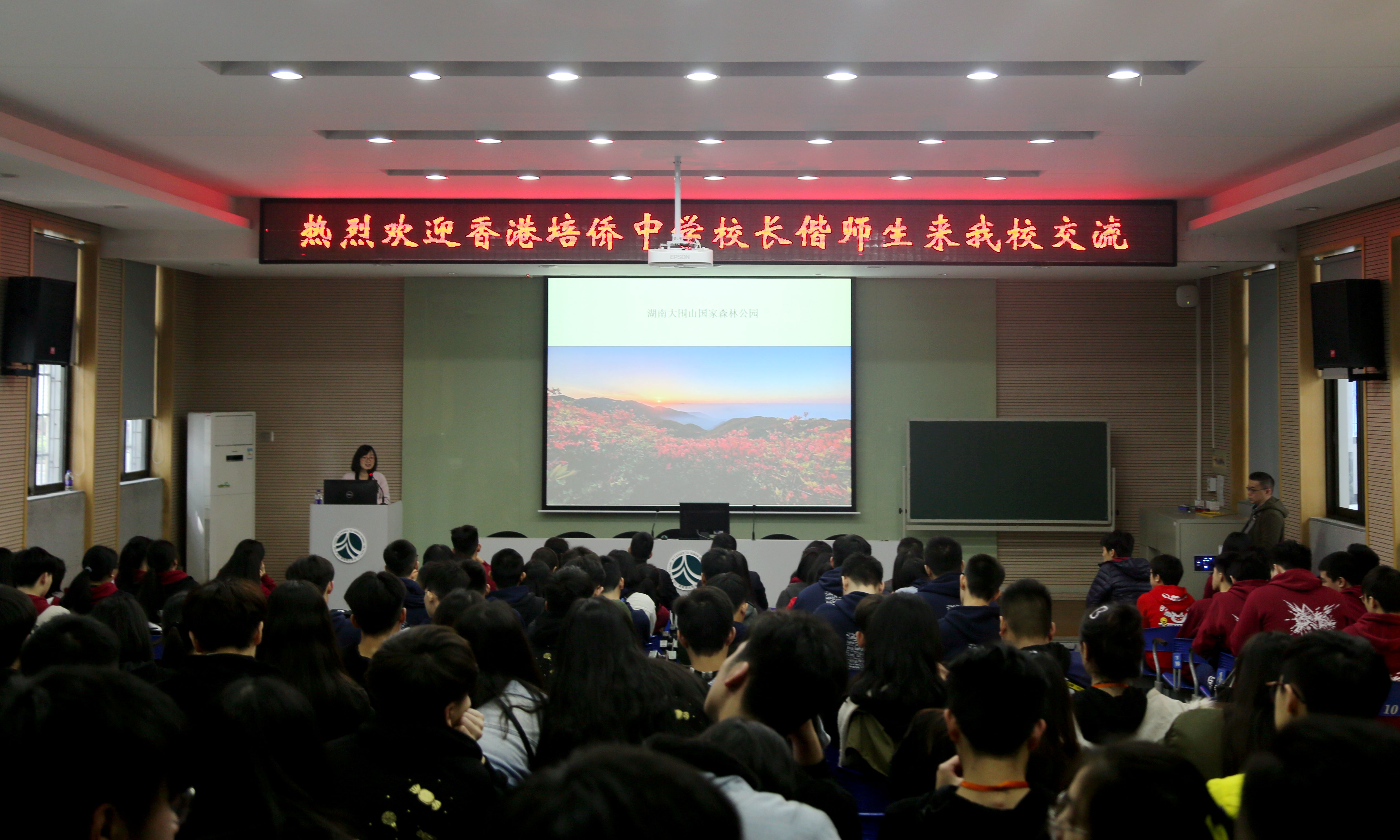 根据培侨师生此行的学习主题――地理与环保教育,我校地理组杨夏老师为香港师生们精心准备了一节湖南地理知识讲座,杨老师的讲座集湖南地理地貌、风俗文化、环境保护等内容于一体,内涵简明而丰富,受到来访师生喜爱。培侨中学伍校长表示,杨老师的讲座为师生们接下来的张家界研学行程做了极好的铺设,期待两校师生友谊延续,常来常往!