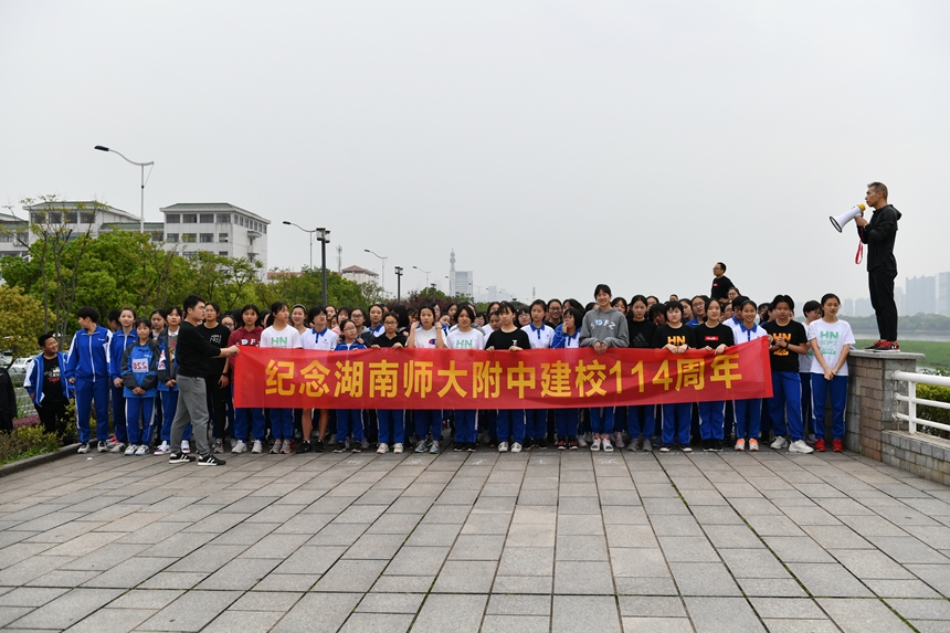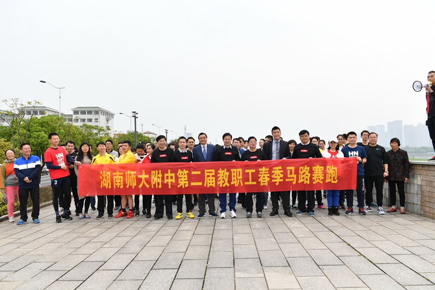 新闻中心 附中新闻 通知公告 最新动态 教育视点 集团学校新闻联播 媒体附中 工作安排 微信附中 学校举行纪念建校114周年春季马路赛跑活动 发布:校办公室 来源:学生发展处 日期:2019-04-15 人气:分享到: 4月12日下午,我校纪念建校114周年春季马路赛跑活动在潇湘大道沿江风光带举行。校长谢永红,党委书记黄月初,副校长樊希国、陈迪勋、罗培基,纪检书记李春莲等校领导和全校教职工、高一全体学生共1400余人参加了此次活动。 活动分教职工和学生两个组别,从桃子湖路口出发沿沿江风光带赛跑,全程4.12公里。谢永红校长打响发令枪,同学们如离弦之箭般冲出起跑线。随后,校领导率领全体教职工奔向前方。师生们矫健的步伐和永不言弃的拼搏精神形成了一道亮丽的风景线,不少路人驻足观看,为附中师生喝彩。 此次活动,培养了我校师生的身体锻炼意识,展示了他们朝气蓬勃、奋发向上的精神风貌,增强了他们的爱校情怀和集体荣誉感。 (撰稿 袁建光) 上一篇:同心同行 不辱使命 ——师大附中集团政治教师学习贯彻习近平思想政治课教师座谈会重要讲话精神 下一篇:学校召开教育集团教研科研工作会议 通知公告 更多 关于征集湖南师大附中“十五五” 湖南师大附中2026年教师招聘(第 湖南师大附中2025年教育教学成果 湖南师范大学附属中学2025年零星 关于举办第40届校园文化艺术节的 湖南师范大学附属中学2026年教师 最新动态 更多