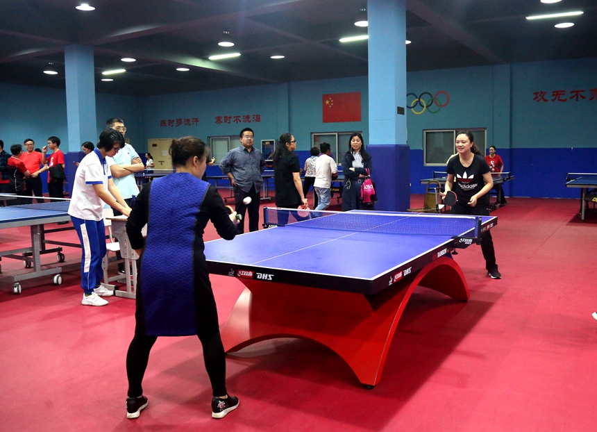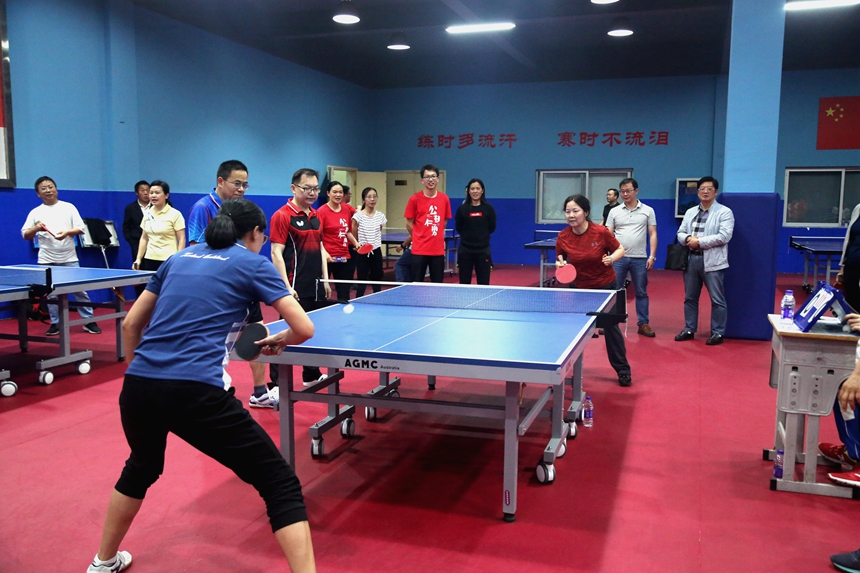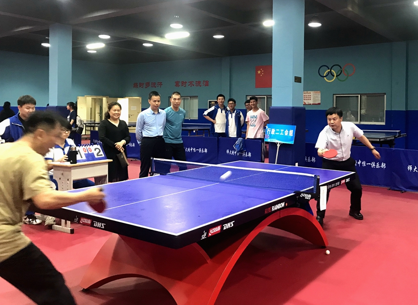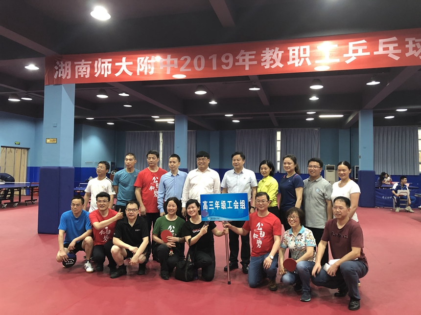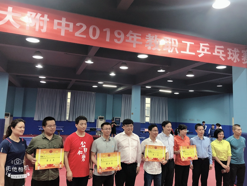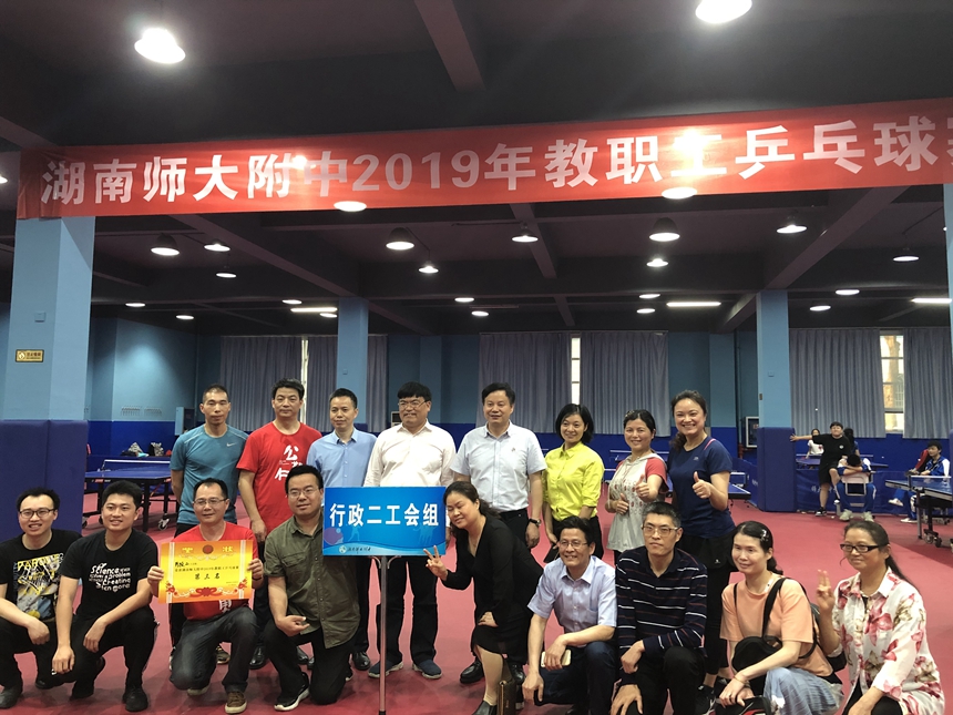 新闻中心 附中新闻 通知公告 最新动态 教育视点 集团学校新闻联播 媒体附中 工作安排 微信附中 学校2019年教职工乒乓球比赛圆满落幕 发布:校办公室 来源:工会 日期:2019-05-23 人气:分享到: 5月24日下午,教职工乒乓球比赛闭幕式于学校体育馆一楼乒乓球房举行,校长谢永红、副校长兼工会主席陈迪勋、纪检书记李春莲、校长助理苏建祥等出席,工会副主席谭伟主持。 七支参赛队伍经过为期4天的激烈角逐后得出胜负,比赛圆满落下帷幕。老师们在比赛中挥洒汗水,勇于拼搏,团结协作,相互加油!切蹉了球技,提高了水平,收获了健康,分享了快乐! 高一年级工会小组获得第一名,教研联组工会小组并列第一名,高二年级工会小组获得了第二名,行政二工会小组获得第三名。学校领导为获奖代表队颁奖并合影留念。 上一篇:我校与新疆吐鲁番市实验中学开展“联校联班”主题团日活动 下一篇:我校被评为长沙市2018年度高考优秀考点 通知公告 更多 关于开展“科研优秀奖”评选活动 湖南师大附中2025-2026学年度第一学 湖南师范大学附属中学2025级新生 湖南师范大学附属中学大泽湖校区 2025年湖南省基础教育教学成果奖 湖南省教育厅关于开展2025年湖南 最新动态 更多