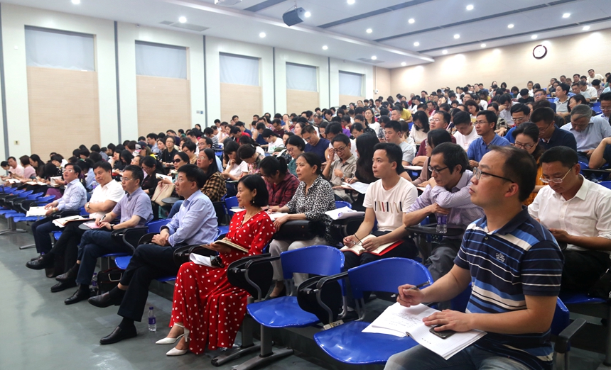 黄月初作总结发言,他指出谢院长的报告生动还原了第十三届全国人民代表大会第二次会议的情境,解读了大会背后故事的内涵,唤醒了教育工作者的责任和担当意识。黄书记强调了开展全校教职工政治学习活动的重要性、必要性:及时了解国家大事,了解政治背景,从而更好地引导我们的教育教学工作,把我们的学生培育成为社会主义事业的接班人。