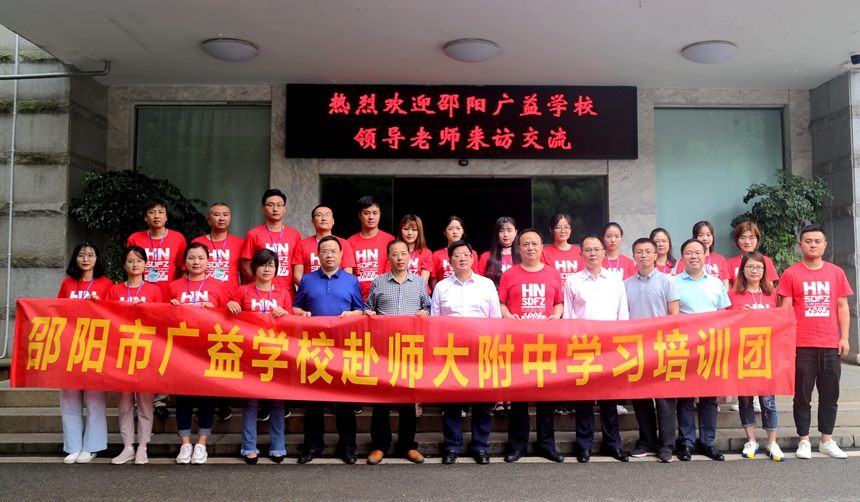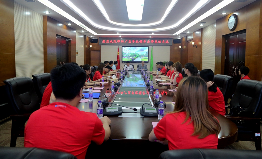新闻中心 附中新闻 通知公告 最新动态 教育视点 集团学校新闻联播 媒体聚焦 工作安排 微信附中 邵阳广益学校领导老师来访 发布:校办公室 来源:学生发展处 日期:2019-05-31 人气:分享到: 5月31日上午,邵阳广益学校领导老师来校访问交流。来访团由邵阳广益学校校长张海蛟、副校长彭顺钢、邓仁辉带队,一行共23人。我校党委书记黄月初在校史馆会议室致欢迎辞,邵阳广益学校校长张海蛟讲话,欢迎仪式由学生发展处副主任袁建光主持。 李显亮、袁建光分别就班主任工作、全员育人工作与来访团展开交流,分享心得。 期间,来访团在校史馆会议室观看了我校校庆宣传片《荣光》。活动结束后,双方领导老师在校史馆门口合影留念。 上一篇:学校开展全体教职工政治学习活动 下一篇:努力奔跑,做新时代的追梦人 —— 谢永红校长在2019届高三学生成人仪式暨毕业典礼上的致辞 通知公告 更多 湖南师范大学附属中学2024年度废 湖南师范大学附属中学化学实验室 湖南师范大学附属中学出国(境) 关于开展2024年暑假教科研论文评 湖南师范大学附属中学2024年暑假 关于申报“十四五”课题2024年度 最新动态 更多