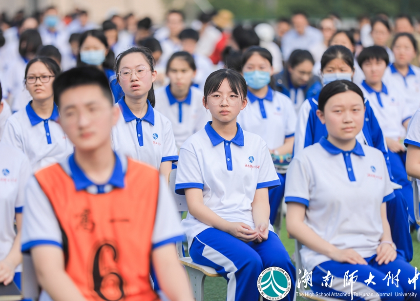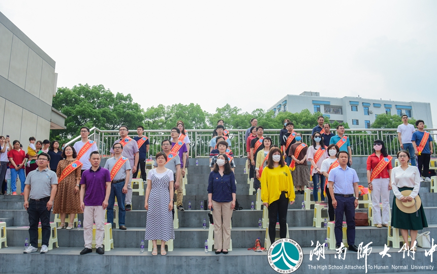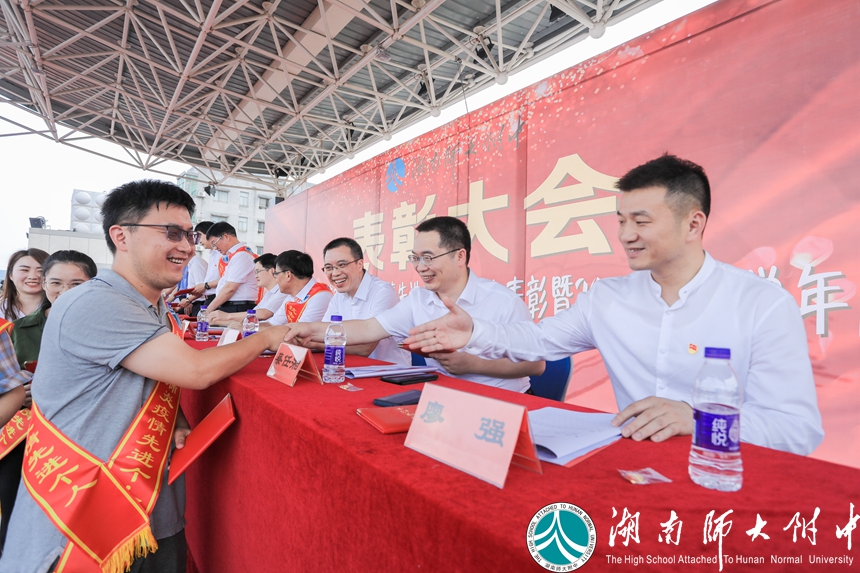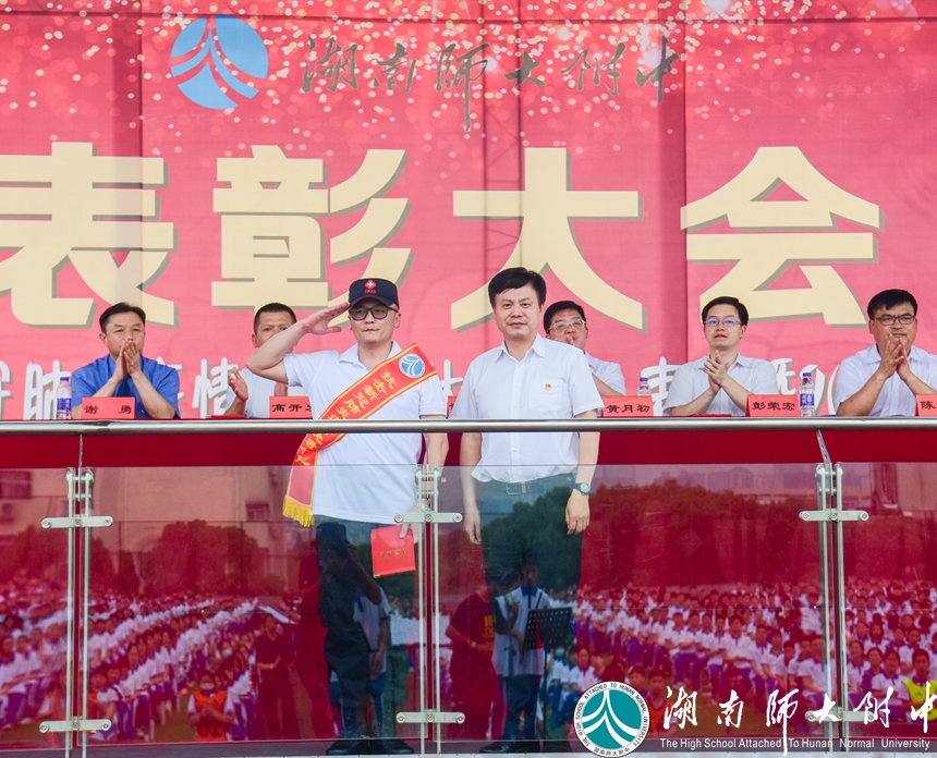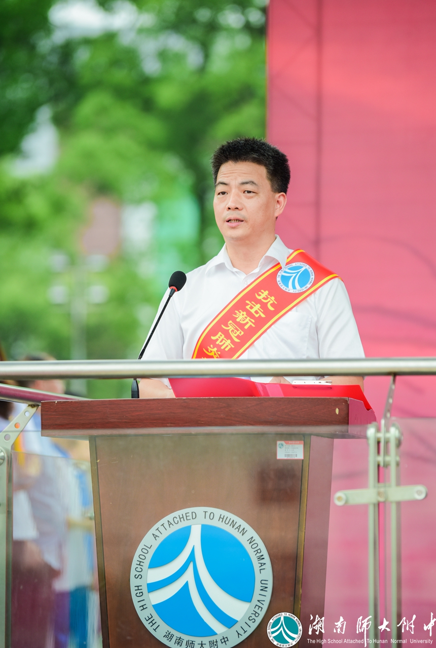 武汉市民自发收集零散的“暖宝宝”送至方舱医院的故事,感动了主席台上发言的优秀校友冯国强,也感动了操场上、看台上数千师生,这位中南大学湘雅二医院国家紧急医学救援队副队长,在武汉抗疫一线奋战多日归来的汉子,说起一线的故事时几度哽咽。从他的分享中,我们近距离的感受到了白衣天使执着无畏的勇敢,也看到了受“公勤仁勇”校训熏陶下的优秀附中人的担当。会上,谢永红校长为他戴上绶带,并授予他湖南师大附中“抗疫先进个人”称号。