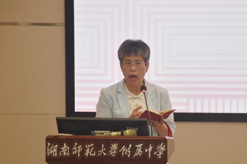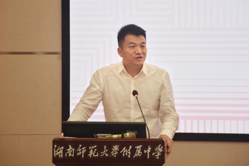 华东师范大学带队老师景培书和湖南师范大学带队老师彦中玉代表实习队指导老师发表讲话。景培书感谢附中对师范生培养的支持,表示会全力配合附中和指导老师的工作,并对实习老师提出了要求。彦中玉感谢附中为湖师大吸引了大批优秀人才,并希望实习老师高度自律、善于总结反思、虚心向兄弟院校实习老师学习。