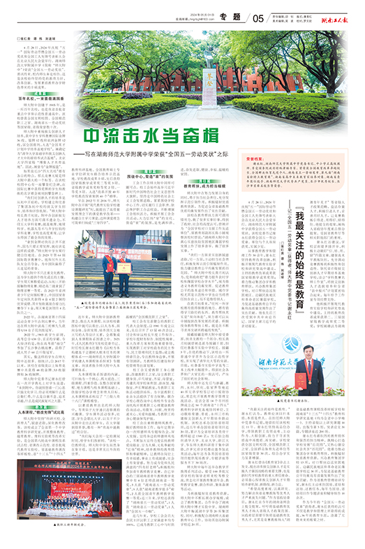 新闻中心 附中新闻 通知公告 最新动态 教育视点 集团学校新闻联播 媒体聚焦 工作安排 微信附中 【湖南工人报】“我最关注的始终是教育” ——记“全国五一劳动奖章”获得者、师大附中党委书记谢永红 发布:管理员 来源:未知 日期:2024-05-01 人气:分享到: “我最关注的始终是教育” ——记“全国五一劳动奖章”获得者、师大附中党委书记谢永红 张仁贵 谭 伟 刘进球 ▲校党委书记谢永红。 4月28日,2024年庆祝“五一”国际劳动节暨全国五一劳动奖状和全国工人先锋号表彰大会在北京人民大会堂举行。湖南师范大学附属中学获得全国五一劳动奖状,该校党委书记谢永红获得全国五一劳动奖章。单位与个人双双获奖,实属少见。 从事教育教学和管理工作30余年,谢永红坚持教育改革创新,积极开展现代教育实验学校和研究型高中建设,主持的教育改革成果获国家级教学成果奖项;着力推动集团办学和教育帮扶,兴办教育集团学校,对口帮扶边远贫困地区、边疆民族地区和革命老区薄弱学校,为促进基础教育公平均衡和高质量发展作出了突出贡献。他也先后三次受到中共中央总书记、国家主席习近平的亲切接见。 “我最关注的始终是教育。”谢永红认为,教育应该回归本质,本质是育人。在担任师大附中党委书记前,他曾担任该校校长11年。谢永红坚持高品位办学,带领教职工攻坚克难、主动作为、大胆创新,致力于寻求优质高中再提质、再突破。学校荣获全国文明校园、全国模范职工之家、全国群众体育先进单位等国家级荣誉30次,综合办学实力显著增强。 谢永红曾在《教育家》杂志上发文,提出培养拔尖创新人才是实施人才强国战略的重要支撑,也是新时代学校教育的重大责任使命。必须潜心探索拔尖创新人才早期培养新机制、新路线、新方法。 “希望高度重视、认真研究、努力解决我省竞赛教练等优秀人才严重流失问题。”作为省政协委员,谢永红在今年的湖南省两会上提交提案,呼吁将基础教育优秀人才纳入省级人才政策范围。从政府层面要尽快将基础教育优秀人才,尤其是竞赛教练纳入“湖湘青年英才”等省级人才政策范畴,盘活存量人才,积极引进人才,妥善用好人才,让竞赛教练引得进、用得好、留得住。他提交的提案,被纳入省政协年度重点督办提案,受到省教育厅等相关职能部门的重视。 谢永红还建议,学校层面要多措并举,积极主动做好“引、培、用、留”四篇文章,建强高水平教练队伍,充分调动竞赛教练的积极性和创造性。依托省市级拔尖创新人才早期培养基地学校,设立“学科奥赛名师工作室”,将拔尖创新人才选拔培养和全省“县中振兴”计划紧密结合起来,每年给予工作室专项经费支持。 他积极开展现代教育实验学校和研究型高中建设,主持的教育改革成果获第二、三届国家级教学成果奖二等奖;学校被确认为湖南省基础教育课程改革样板学校和湖南省“十三五”“十四五”教育科学研究基地(均为全省中小学唯一)。主持省级以上研究课题10项,出版专著3部,发表论文30篇,专题讲座近200场。 谢永红有着炽烈的教育情怀和强烈的担当精神,既精心打造学校发展“后花园”,又热心建设社会共享“百花园”。他着力推动集团办学和教育帮扶,积极辐射优质教育资源,兴办教育集团学校13所,对口帮扶边远贫困地区、边疆民族地区和革命老区薄弱学校近30所,为促进基础教育公平均衡而有质量发展作出了突出贡献。作为省教育管理培训专家,谢永红主动承担国培、省培和送培、送教任务,每年为国培、省培项目作专题讲座和辅导报告10余次。 作为今年的“全国五一劳动奖章”获得者,谢永红获得的认可不仅是教学和管理上所取得的成就,36年的教育生涯,浇灌了无数未来的栋梁之材。 原文链接:http://hngrb.hnszgh.org.cn:9667/webhnzgh/detail.html?id=1714484932153 上一篇:全国校园影视主题研讨培训活动暨2024年度理事会议代表来校考察交流 下一篇:【湖南工人报】中流击水当奋楫 ——写在湖南师范大学附属中学荣获“全国五一劳动奖状”之际 通知公告 更多 湖南师范大学附属中学2024年度废 湖南师范大学附属中学化学实验室 湖南师范大学附属中学出国(境) 关于开展2024年暑假教科研论文评 湖南师范大学附属中学2024年暑假 关于申报“十四五”课题2024年度 最新动态 更多