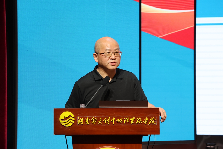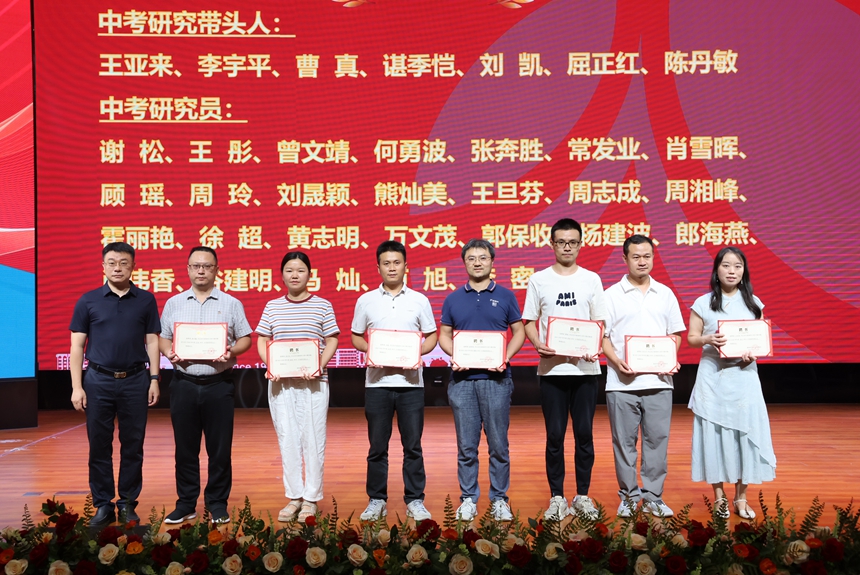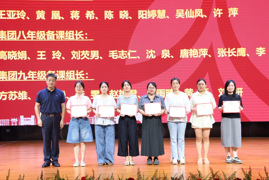 附中双语实验学校书记陈益表示,教育是关乎生命成长的事业,呼吁共建“有爱、有趣、有生命力”的教育生态。集团办副主任李海汾作年度教学质量分析报告,总结成绩、分析问题。博才实验中学欧阳根根老师就年级管理工作作经验交流。课程与教学处主任陈淼君宣读并颁发了新学年集团大备课组组长及中考研究带头人聘书。陈胸怀提出“双轮驱动、四条路径、三个思考”,强调质量提升与创新培养并重。各集团校就教学计划落实、考试研究、活动协作等议题展开深入交流,达成多项共识。