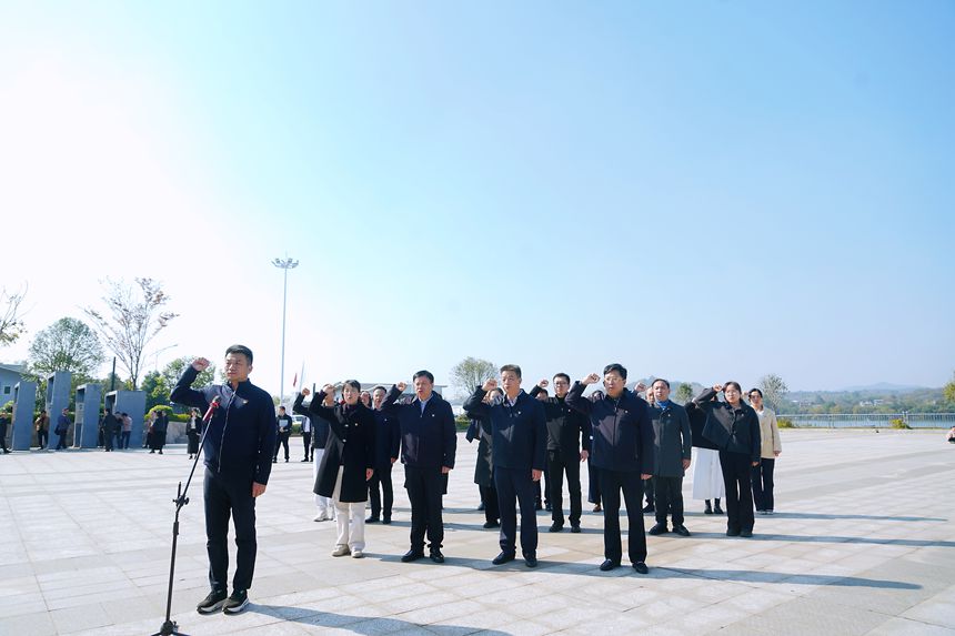 全体党员首先在纪念馆广场举行向英烈敬献花圈仪式。面对《伟大的水口山工人运动》大型浮雕,同志们肃立默哀,缅怀革命先烈。在党委委员廖强领誓下,全体党员面向党旗重温入党誓词,铿锵誓言彰显党员同志的坚定信念。