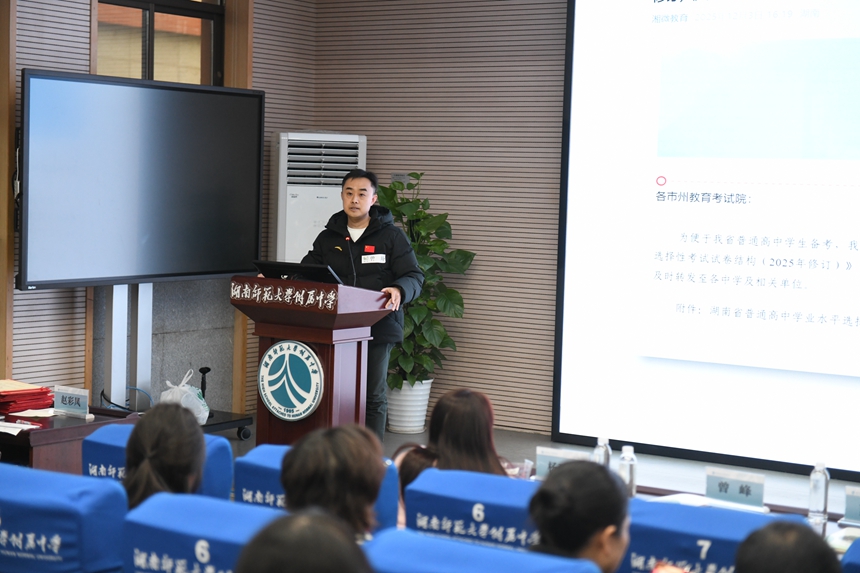 新闻中心 附中新闻 通知公告 最新动态 教育视点 集团学校新闻联播 媒体附中 工作安排 微信附中 长沙市杨群英中学生物名师工作室启动仪式暨首次研修活动在我校举行 发布:管理员 来源:未知 日期:2025-12-05 人气:分享到: 2月4日,长沙市杨群英中学生物名师工作室启动仪式暨首次研修活动于我校顺利举办。长沙市教育局党委副书记、副局长邓芸、教师工作处处长李峰,我校校长苏建祥等领导到场,工作室全体成员参与活动。 苏建祥致欢迎辞,他承诺我校将从多方面为工作室提供保障,期待其成为全市生物教师专业成长重要平台;邓芸副局长肯定工作室往届成效并提出新要求,明确教育局将给予政策与经费支持,希望其成为生物教育 “智囊团” 与 “孵化器”;李峰处长宣读工作室成立及聘任文件,与会领导共同为工作室揭牌并为顾问、名师团队颁发聘书。杨群英作为首席名师作履职表态,学员代表吴俊文也表达了学习成长的决心。启动仪式由我校副校长陈胸怀主持。 首次研修阶段,杨群英梳理往届成果并阐述新周期工作规划,工作室顾问曾峰作《如何做研究型教师》专题报告,活动还为上届优秀成员颁发结业证书。仪式后,全体人员合影并开展小组破冰活动,凝聚团队合力。 此次活动标志着工作室新征程开启,未来其将在市教育局指导与我校支持下,助力打造高素质生物教师队伍,为提升长沙中学生物教育教学水平赋能。 上一篇:我校八年级师生赴张家界民族中学开展助学实践活动 下一篇:我校召开2025-2026学年度第一学期教育教学半期工作总结会议 通知公告 更多 关于征集湖南师大附中“十五五” 湖南师大附中2026年教师招聘(第 关于开展2024-2025学年度科研成果评 湖南师大附中2026年教师招聘(第 湖南师大附中2025年教育教学成果 湖南师范大学附属中学2025年零星 最新动态 更多
