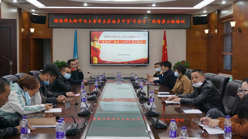 名校与张家界市慈利县三官寺土家族乡中学“手拉手”国培项目(A617)计划开展四轮培训活动。首轮培训以学校心理教育为专题,于今年4月份在三官寺土家族乡中学举行;第三轮培训将围绕“五育并举、立德树人”主题开展系列活动,将于11月底在三官寺土家族乡中学举行;第四轮培训则将采用两地线上集体备课方式,不定期地开展网络交流。