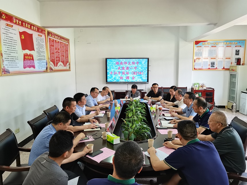 第二站是我校“校校一对一”B218国培服务点武陵源区第一中学。参观校园过程中,黄月初书记兴致勃勃,对该校优美的环境、一流的设施和出色的业绩赞不绝口。武陵源区一中校长廖玉华致辞表示欢迎,并简介了学校情况,表达了国培需求。黄宇鸿作了《高三教育教学管理经验》的微讲座,分享了湖南师大附中高三教学组织和年级管理经验。刘进球汇报了B218国培项目实施计划,提出实施要求和相关请求。武陵源区教育局师资培训中心主任唐彩虹介绍了项目申报与立项经过,要求双方密切对接,密切合作,使项目落地见效,将项目做实做亮。黄月初畅谈了他参观武陵源区一中的深刻印象,指出了B218国培项目与乡村教育振兴的重大关联,表达了“来学习、来牵手、来合作、来联谊”等意愿。
