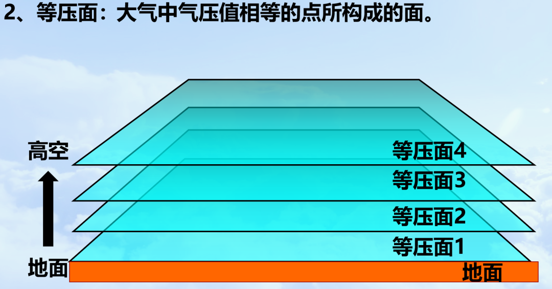 讲解完气压后,假设地面质地均匀,受热情况相同,引入“等压面”的概念。