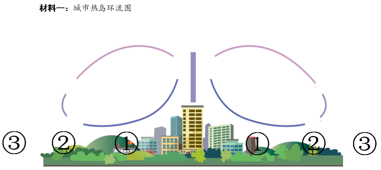 3.根据大气热力环流的特点,你认为有大气污染的工厂和城市绿地应该分别布局在①、②、③三地中的哪一地,并说明理由。