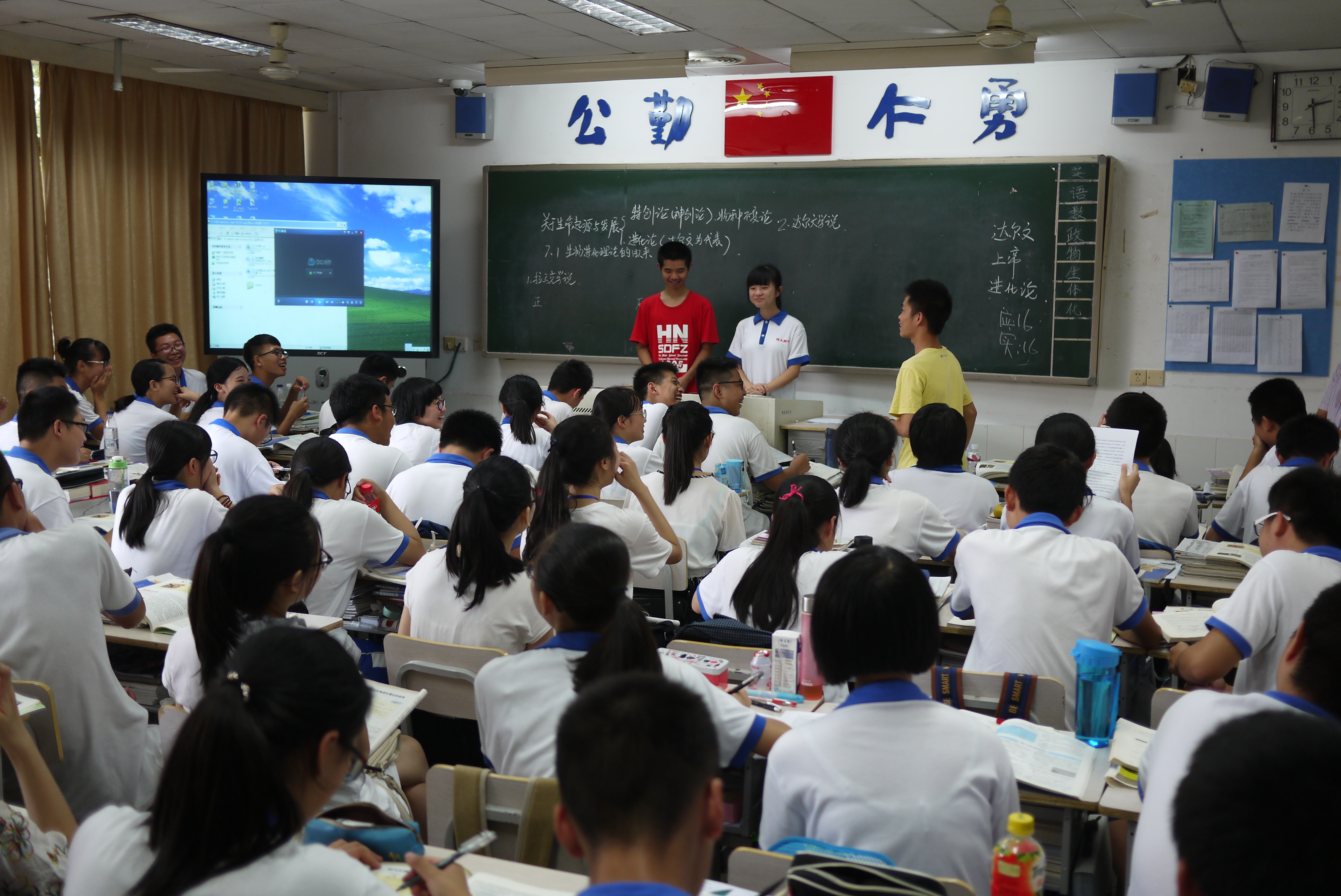 2016年9月26日下午,湖南师范大学生命科学学院2013级实习队在徐湘教授的带领下来我校见习,听取了黄国强老师的《现代生物进化理论的由来》一课。黄国强老师以“自主学习合作探究”为核心理念,以辩论赛的形式对拉马克学说和达尔文学说进行了讨论,为实习生们展示了一种可取的授课形式。 课后的见面会上,高二生物组的老师们与实习生们进行了交流,分享了对实习见解,以及对实习老师的期待。最后教研组长杨群英老师就班主任实习、教学实习、教学进度等方面提出了相关的要求,并预祝此次实习工作圆满成功。(撰稿人:易任远 审稿人:杨群英)