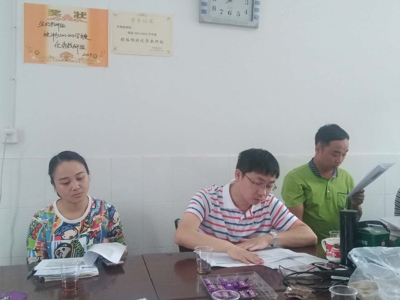 科研与教师发展处左小青主任与会,并表示愿意作为中间桥梁尽力促成生物教研组更多学习培训的机会。生物教研组组长杨群英老师就上学年度的工作进行了回顾,对上学年度工作成果表示肯定的同时也对各位老师提出了新的期望和要求。1.做好集体备课,提高到做课题时的水平,同时要有个性备课。2.坚持首页手写教案,要有教学后记和反思。3.注意收集每届的精品题目,及时汇总到相关平台。4.兴趣课要以形成校本教材的成果为目的,培训课要区分层次,体现针对性。5.坚持以备课组为单位进行读书活动,可以自荐书目,在教研组会上进行交流。6.以黄国强老师为带头人进行“疑惑摘要”的课题研究,同时不能放松高考和学考的研究。7.实验室三位老师的工作,在完成常规工作的基础上应有所创新,分工更明确一些。8.野外科学考察要争取拓展到普通班,延续大自然大课堂的优良传统,注意物化结果的形成。最后杨群英老师将工作要求总结为常规工作高规格,高考学考高质量,研究工作高品位。