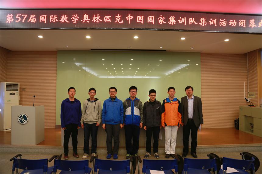 闭幕式上,熊斌教授对这次集训活动做了总结,他对我校承办这次集训活动所提供的热情周到的服务工作给予了很高的评价,对全体教练员、学员和工作人员表示感谢,对参加集训的学员们提出了殷切希望。最后,他代表中国数学奥林匹克委员会宣布了第57届国际数学奥林匹克中国国家代表队六名队员名单,他们是:河北石家庄二中杨远、上海中学张盛桐、湖北武钢三中王逸轩、北京人大附中贾泽宇、湖南师大附中宋政钦和上海复旦附中梅灵捷。