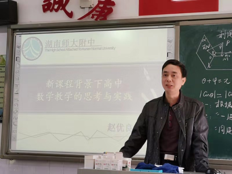 10月31日,在由长沙市教育局举办,长沙市特级教师工作研究专业委员会与长沙市中小学教师发展中心承办的市中学名优教师“志愿支教,送教下乡”活动中,赵优良老师作了题为《新课程背景下高中数学教学的思考与实践》的讲座,受到了与会专家和老师的一致好评。