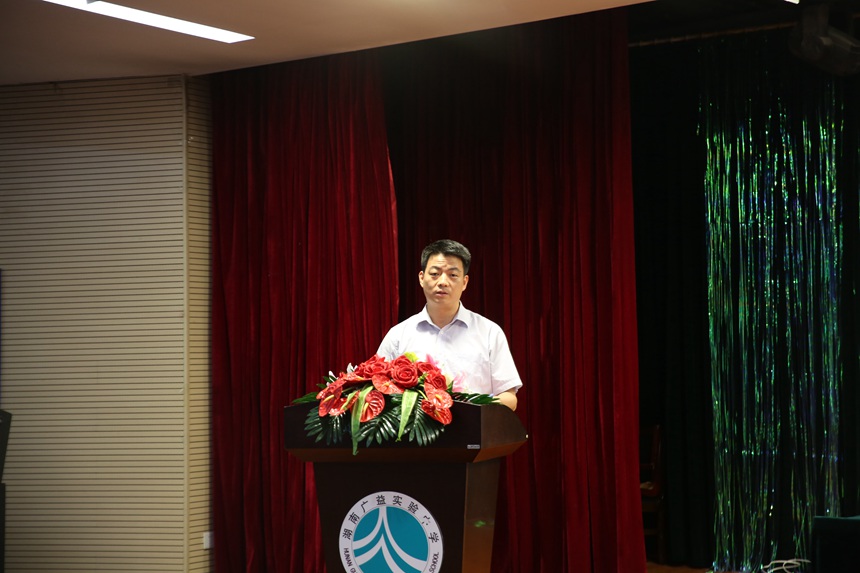 最后,黄月初书记作竞赛总结,他代表全体与会代表对承办单位湖南广益实验中学表达了衷心的感谢,并以“深、培、新”三个关键词阐述了此次赛课的核心与内涵。他强调,本次赛课活动不是逗号,而是一个顿号,青年教师赛课及教师培养工作将有更多、更好的活动。
