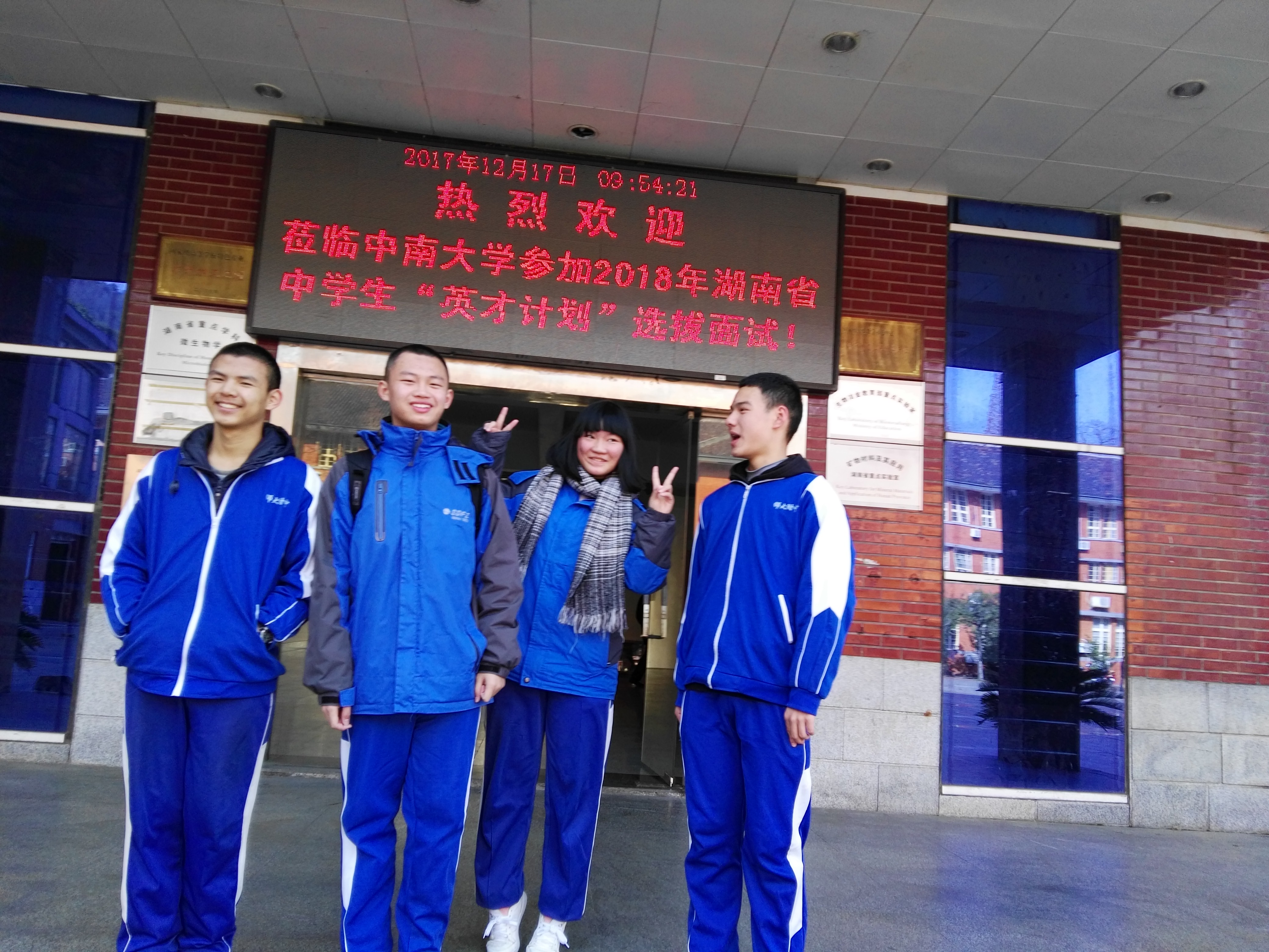 2017年12月16日,2018年湖南省“英才计划”最终选拔环节之高校面试活动在中南大学、湖南大学同时举行。两所高校面试均按五大学科(数学、物理、化学、生物、计算机)分组进行。面试环节包括自我介绍、课题展示及导师问辩三部分,评审老师们同时结合学生提交的个人申报表、研究开题报告、获奖证明等一系列材料对候选学生的个人素质、科研潜质进行较为全面的考量。经过高校导师的面试与选拔,最终,我校以下四位同学光荣入选2018年度湖南省“英才计划”受培对象,他们分别是: