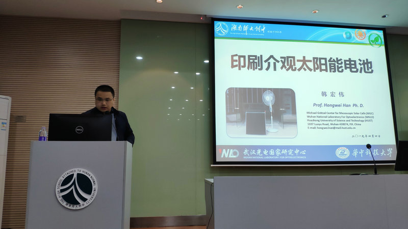 韩教授就新能源领域的科学知识与高二年级同学进行了广泛交流。他对我们所处时代智能化发展所面临的问题,尤其是能源领域面临的危机和发展方向提出诸多有益见解;他也对太阳能光伏应用、光电效应、光伏效应、太阳能光伏系统、太阳能电池板技术发展现状与所遇瓶颈等方面内容进行了系统的讲解;更对介观太阳能电池(MSC)、染料敏化太阳能电池结构、钙矿太阳能电池研究、国内光伏产业发展现状等前沿科技知识进行了着重介绍,并鼓励学生认真学习、勇攀知识高峰,为实现国家科技进步、造福人民打下基础。随后,高二学生就太阳能电池应用等问题与韩教授进行了沟通与学习。