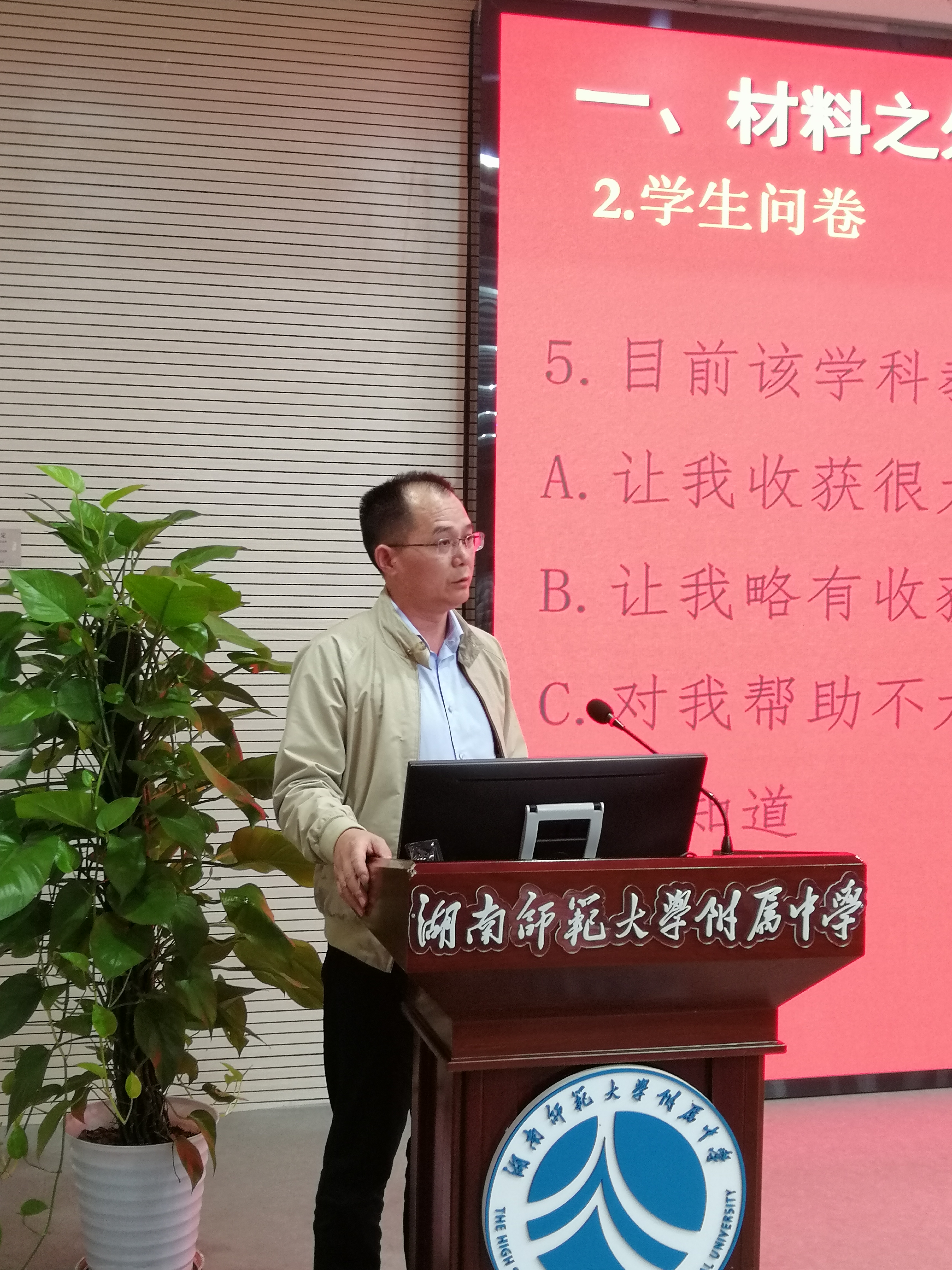 课程建设 教学资讯 课堂教学 学科竞赛 作业公示 校本课程 高考专栏 学校召开2022届高三一轮复习调研意见反馈会 发布:高慧雯 来源:课程与教学处 日期:2021-10-18 人气:分享到: 10月15日下午,我校2022届高三一轮复习调研意见反馈会在图书馆报告厅举行。苏建祥副校长、高三工作组成员及全体高三教师出席会议,会议由课程与教学处副主任朱修龙主持。 首先,教学指导委员会主任汪训贤作2022届高三一轮复习“课堂调研”整体意见反馈报告。他表扬高三调研课堂能有效落实“三导四学”理念,能紧密链接高考,同时也直言不讳地指出了部分老师调研课中的不足。他从内容设计、问题设计、师生互动、复习模式、评课反思等方面分别指出了问题,并建议高三老师们要认真研究课标,深入钻研高考题,落实“三步三环”集体备课,抓好常规细节落实。 接着,学校相关部门作调研反馈报告,年级组作表态发言。 课程与教学处主任黄宇鸿通报了教师值班备勤、课堂学生问卷调研及年级组管理等情况,他特别强调,高三集体备课要注重实效性,作业布置要结合学情,应将面批作业做为个性辅导的一个重要突破口。 德育与学生发展处主任吴卿以《齐抓共管,全员育人,助力优良学风建设》为题对调研督导高三常规管理及学生心理状况调研结果进行了反馈。她指出,高三老师应关注学生睡眠及运动时间,及时对学生提供学科学法指导。 科研与教师发展处副主任向超对高三教师问卷调查的统计分析结果进行了反馈。他总结,从教师问卷调查显示看,2022届高三教师整体敬业高效,学校行政对高三工作管理督导适度,高三课堂教学研究蔚然成风,各备课组工作扎实有序。 高三年级组长李海汾从学生、班主任、任课老师及年级工作组等层面分别指出现阶段存在的问题,并对后阶段的改进举措提出了计划和要求。 最后,苏建祥副校长作总结讲话,他认为本次高三调研工作组织有力,落实到位。他强调,必须继续坚持全面育人、全程育人、全员育人。他指出,高三年级需要落实“三个加强”,加强研究,做有心人;加强落实,做勤快人;加强改进,做创新人。 上一篇:学校课程委员会召开第十三次工作会议暨换届会议 下一篇:湖南师大附中2021-2022学年度对外开放周顺利闭幕 通知公告 更多 关于做好2025年事业单位工作人员 湖南省教育科学规划办《关于做好 关于做好2025年度全国教育科学规 五一假期安全提醒 2025年劳动节放假通知 关于做好政工专业知识考试工作的 最新动态 更多