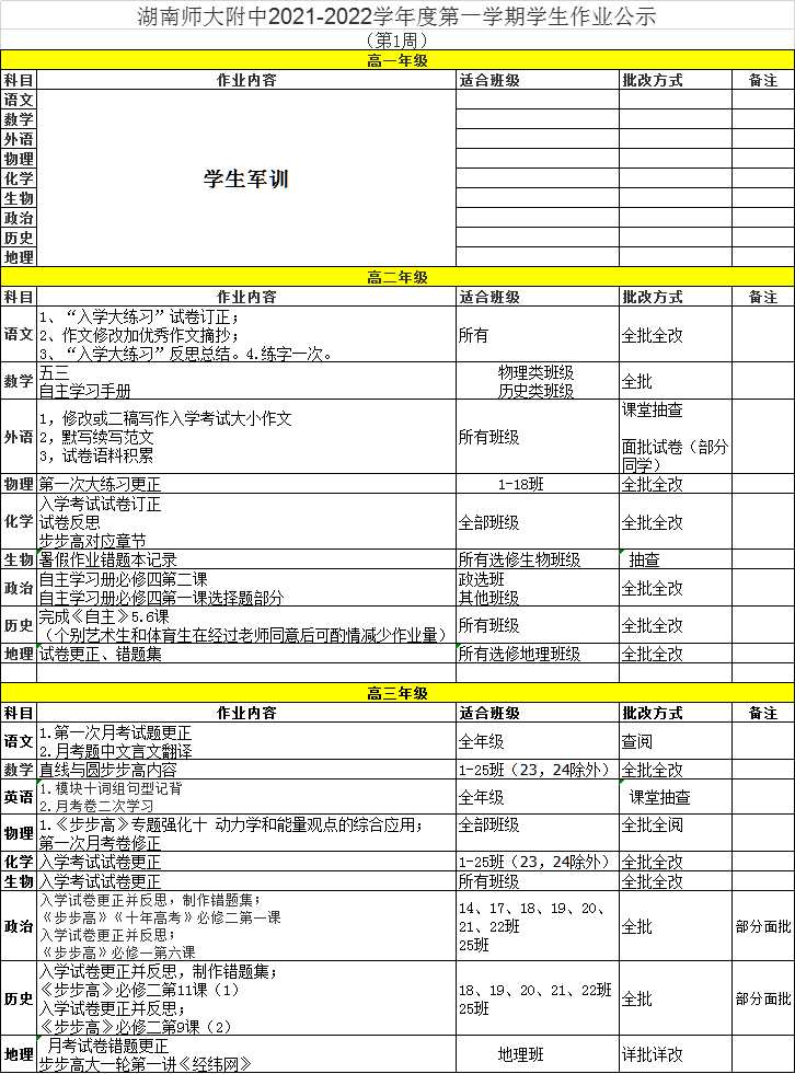 课程建设 教学资讯 课堂教学 学科竞赛 作业公示 校本课程 高考专栏 21-22-1作业公示NO01 发布:课程与教学处 来源:课程与教学处 日期:2021-09-14 人气:分享到: 上一篇:20-21-2作业公示NO18 下一篇:21-22-1作业公示NO02 通知公告 更多 湖南师范大学附属中学基建工程专 关于开展2024年事业单位工作人员 关于开展2023-2024学年度科研成果评 湖南师大附中2024年教育教学成果 湖南师范大学附属中学2024年秋季 湖南师范大学附属中学2024年暑假 最新动态 更多