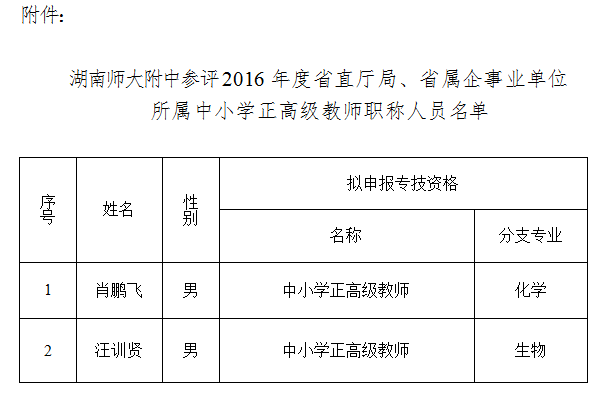 附件:湖南师大附中参评2016年度省直厅局、省属企事业单位所属中小学正高级教师职称人员名单
