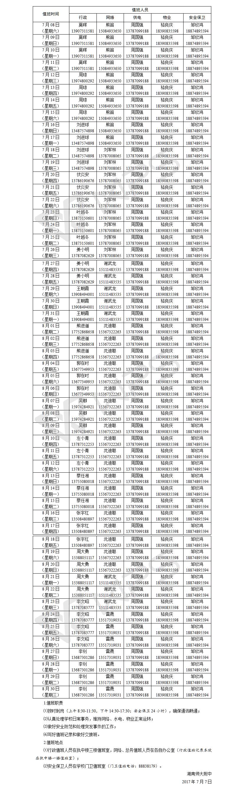 新闻中心 附中新闻 通知公告 最新动态 教育视点 集团学校新闻联播 媒体聚焦 工作安排 微信附中 湖南师大附中2017年暑假行政、网络、总务及安全保卫值班安排 发布:系统管理员 来源:未知 日期:2017-07-20 人气:分享到: 上一篇:关于召开全校教职工大会的通知 下一篇:关于转发湖南省人力资源社会保障厅、湖南省教育厅《关于评选表彰“湖南省优秀教师”“湖南省优秀教育工作者”和第八届 “湖南省徐特立教育奖”获得 通知公告 更多 湖南师范大学附属中学食堂物资供 湖南师范大学附属中学2024年门面 2024年湖南师大附中桐梓实验中学 湖南师范大学附属中学2024年公开 湖南师范大学附属中学化学实验室 湖南师范大学附属中学2024级七年 最新动态 更多