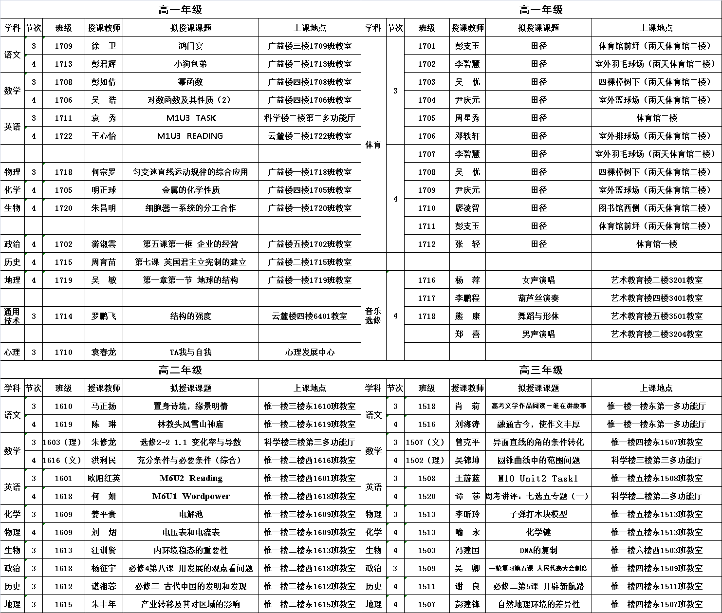 教学开放日活动安排表(10月20日)